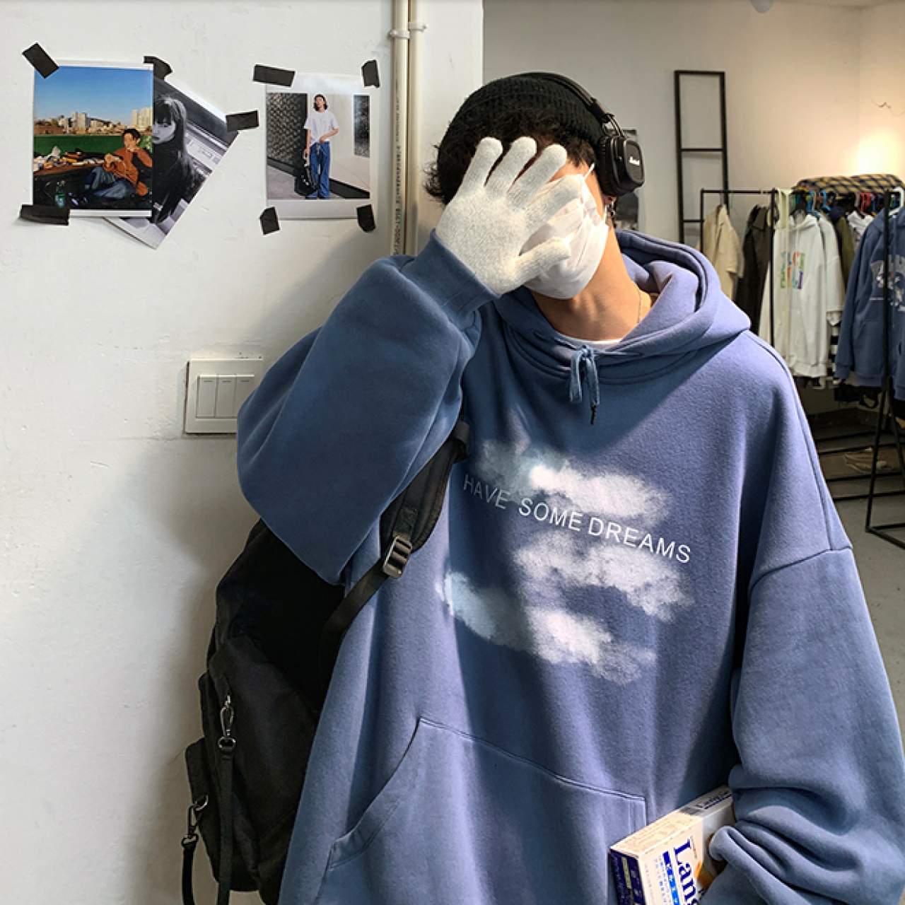 连帽宽松卫衣男加厚秋冬2020新款潮牌上衣服潮流ins港风加绒外套