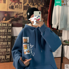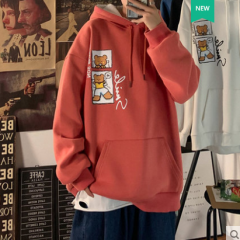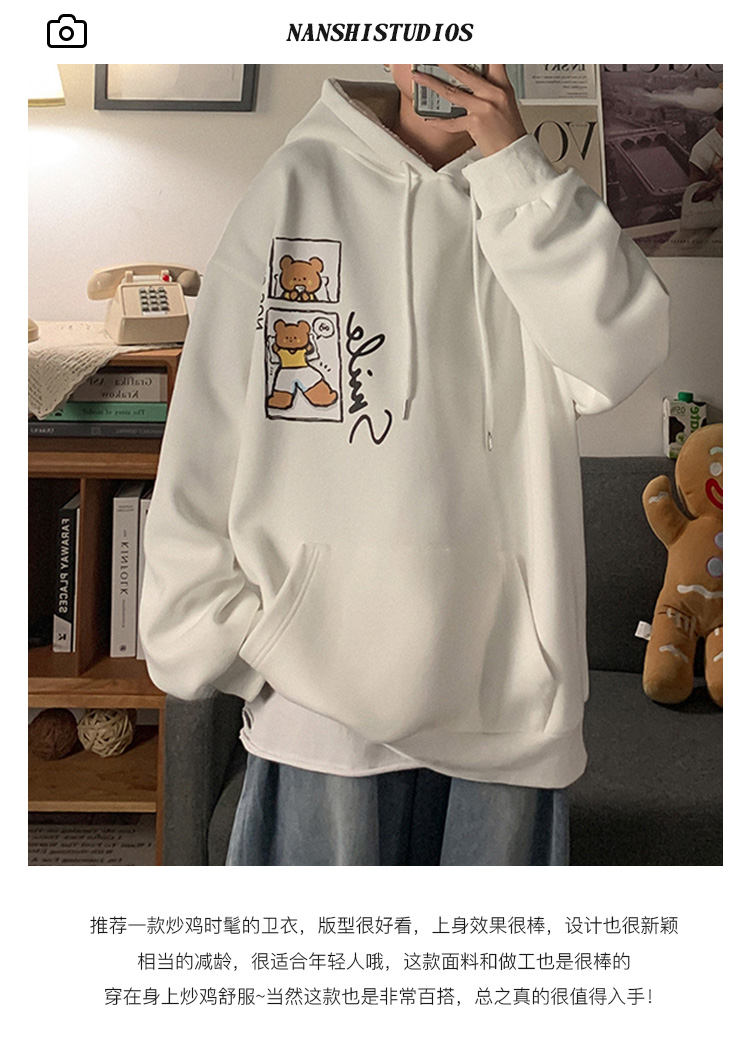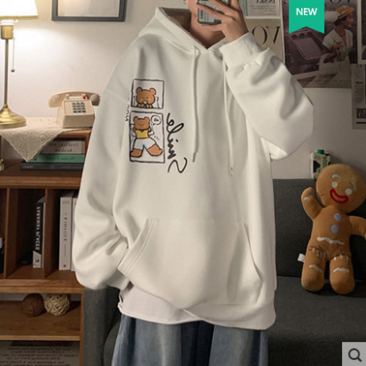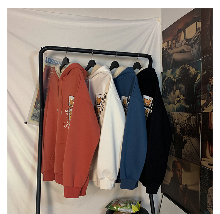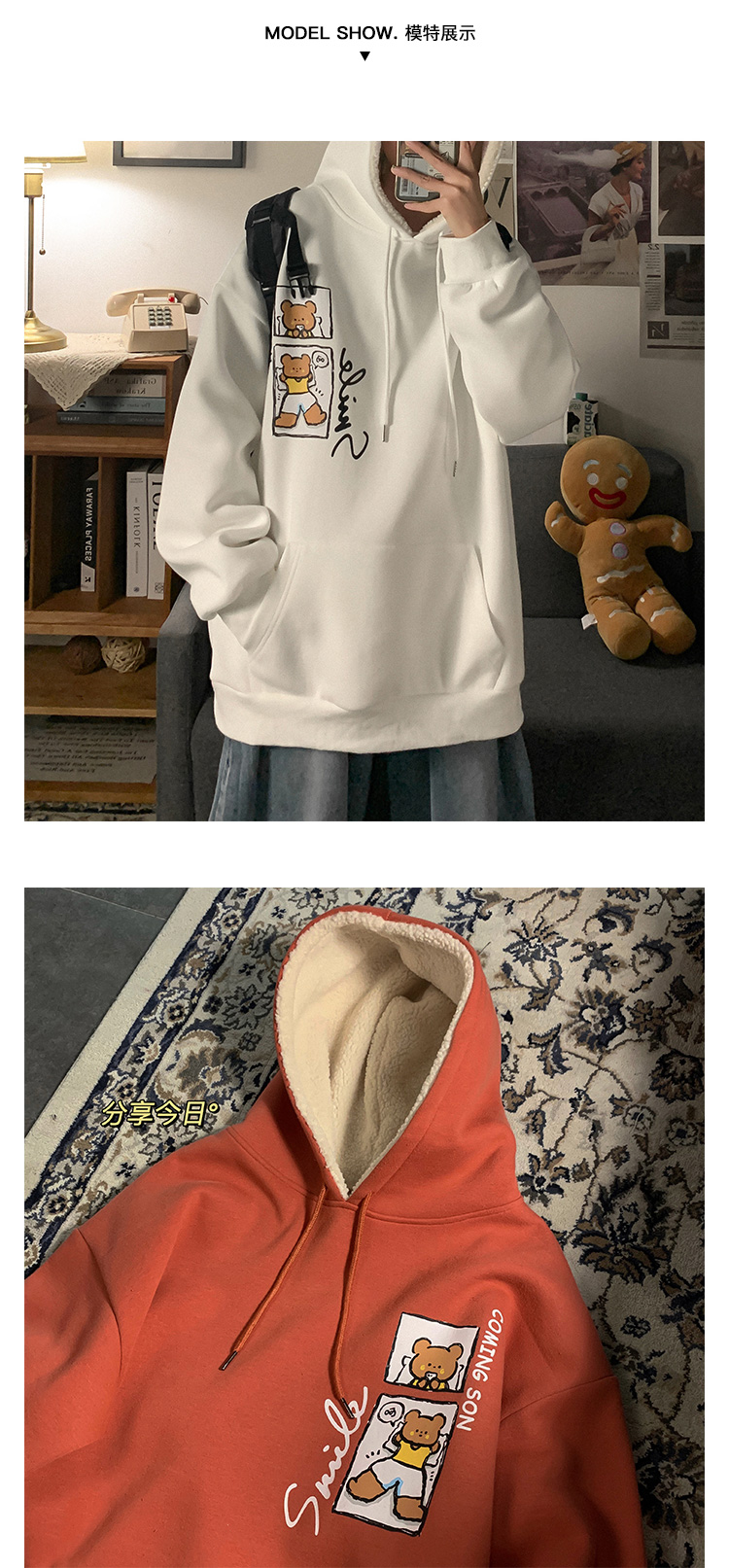连帽卫衣男潮ins韩版卡通印花羊羔绒外套加厚宽松潮流学生上衣服