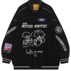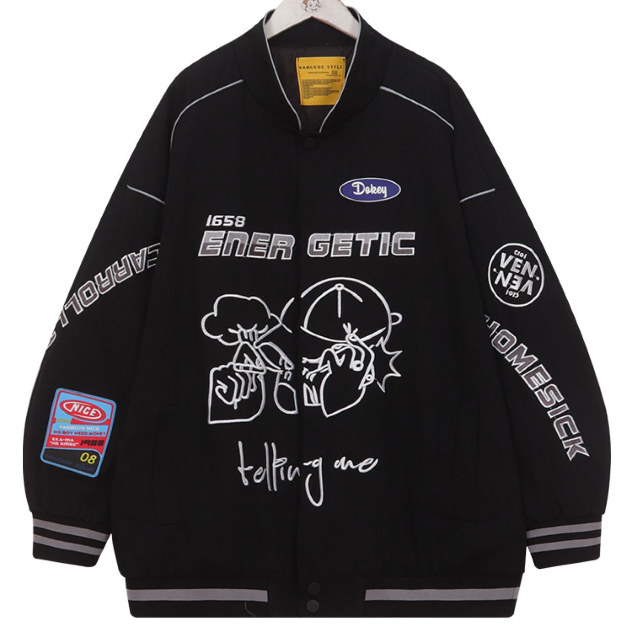 潮ins超火牛仔外套女春秋季加厚宽松oversize情侣夹克刺绣棒球服