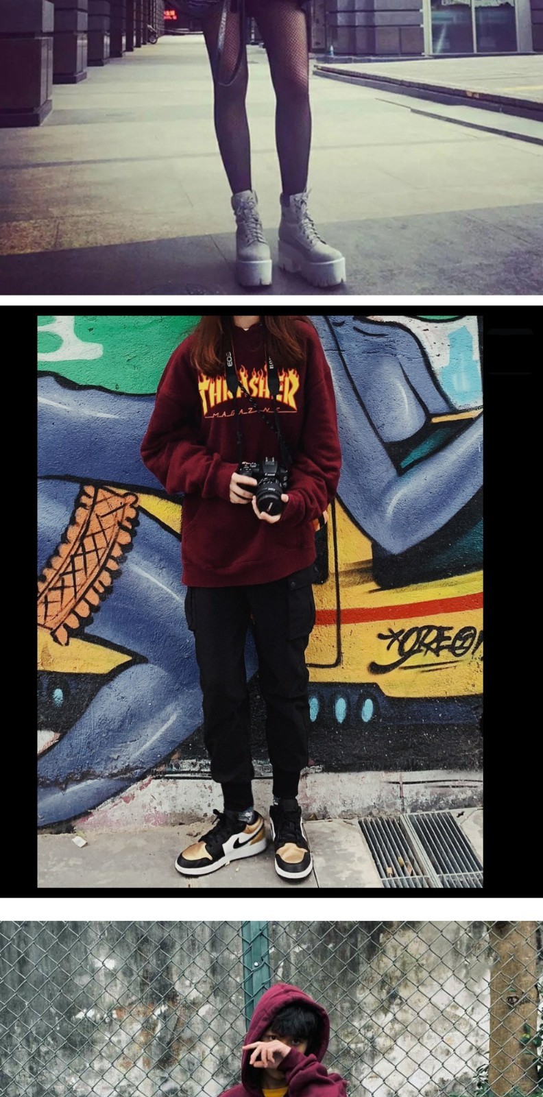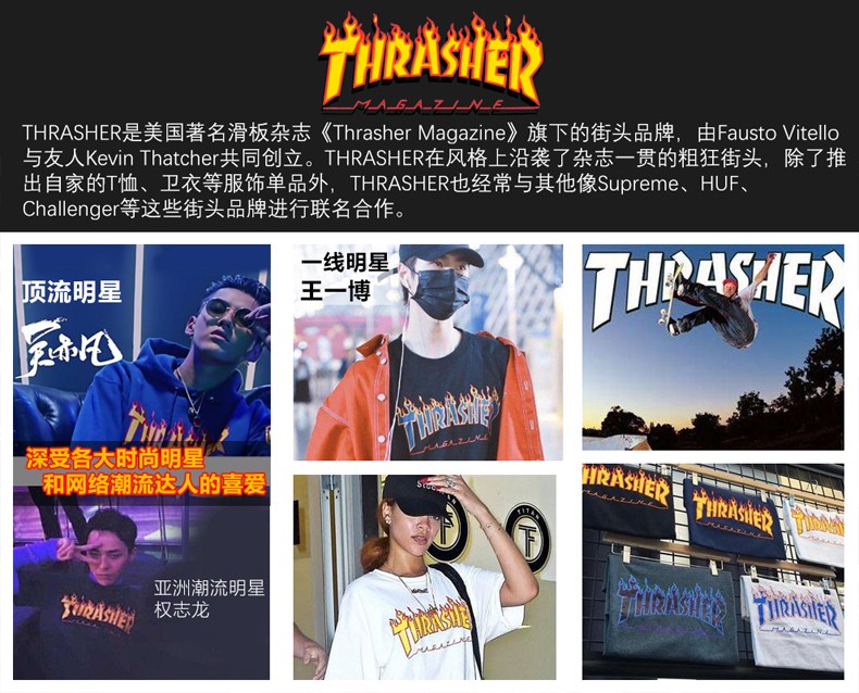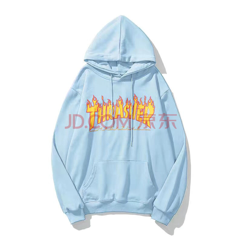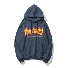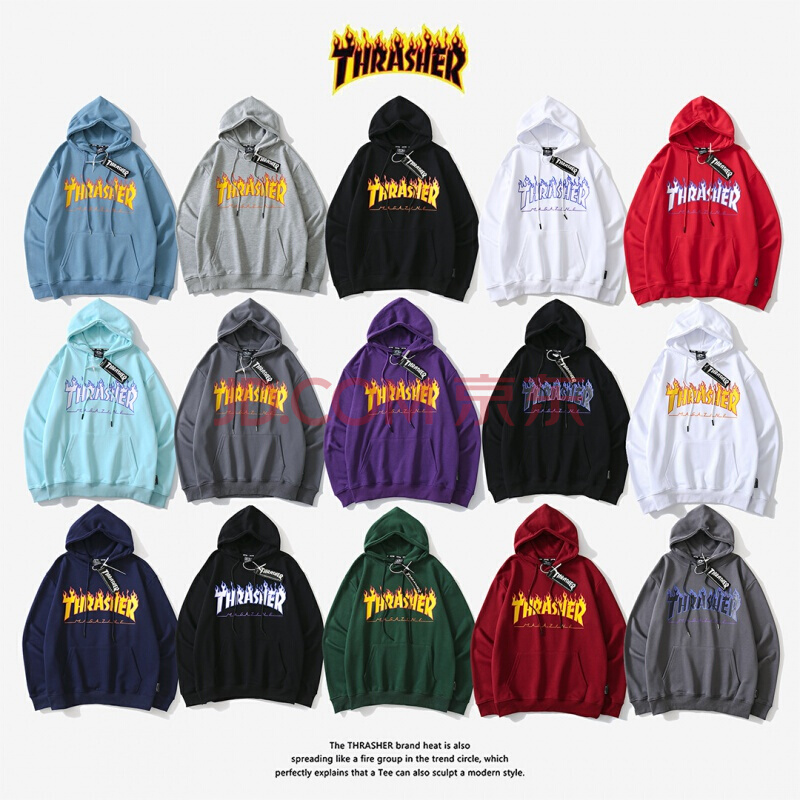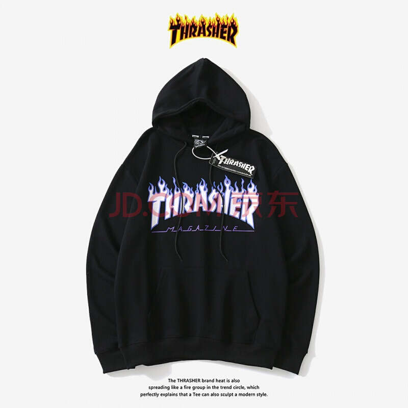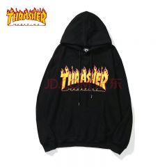潮牌thrasher加绒卫衣男INS秋季滑板嘻哈风情侣装火焰连帽衫外套