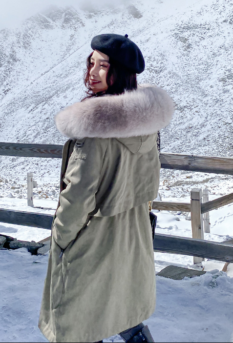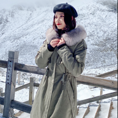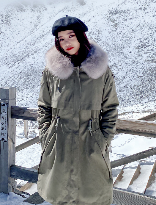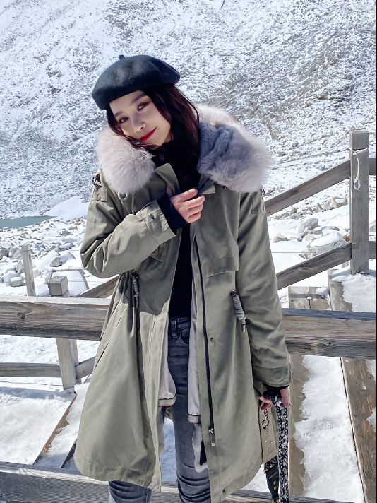 2020冬季新款派克服大衣女中长款獭兔皮草内胆狐狸毛领风衣外套女