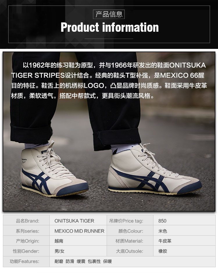 Onitsuka Tiger鬼冢虎MEXICO66复古高帮男女休闲运动鞋DL409-1659