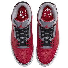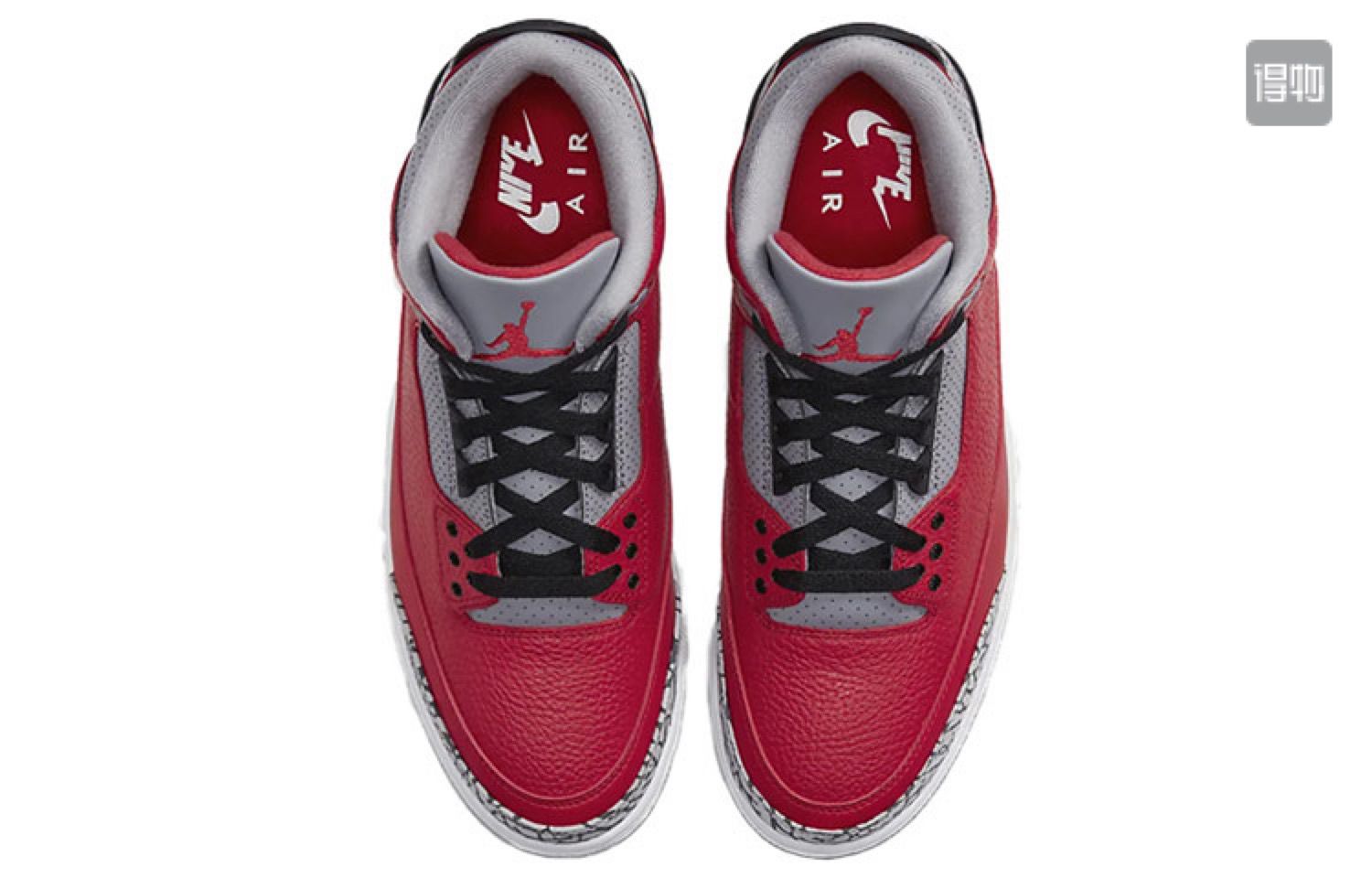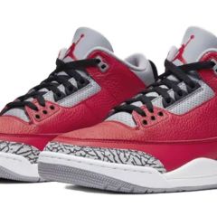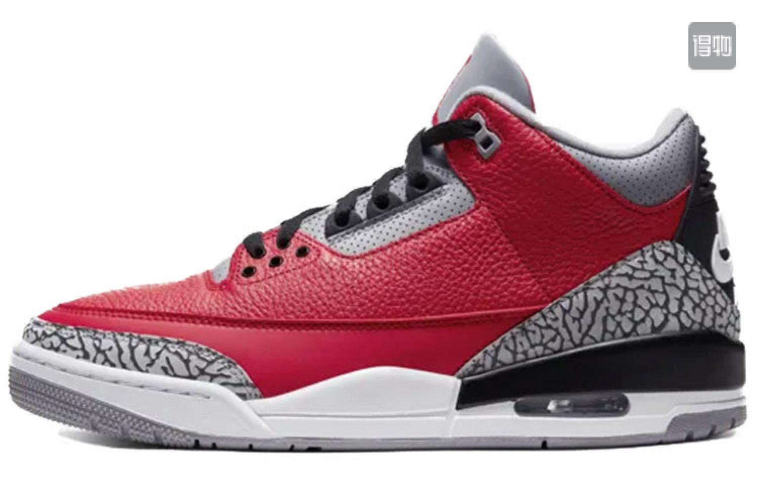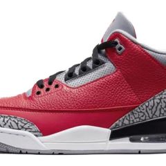 Air Jordan 3在1987年底上市,由当时还名不见经传的 设计师Tinker Hatfeld临危受命设计,推出了这款旷世 之作。Air Jordan 3应乔丹要求降低了鞋帮高度,鞋身加入了极具装饰效果的爆裂纹元素,并首次使用了经典 传神的Jumpman L ogo;中底采用了前后分离式AirSole,并创新使用了后掌可视化气垫,不但兼具避震性与稳定性,更提升了美感。这双鞋身采用了柔软且质感十足的荔枝皮革打造,并与经典的黑灰爆裂纹相互呼应,同时鞋带孔、鞋舌 Jumpman L ogo等地方加入了红色点缀细节,带来极高的辨识度和优雅外观。