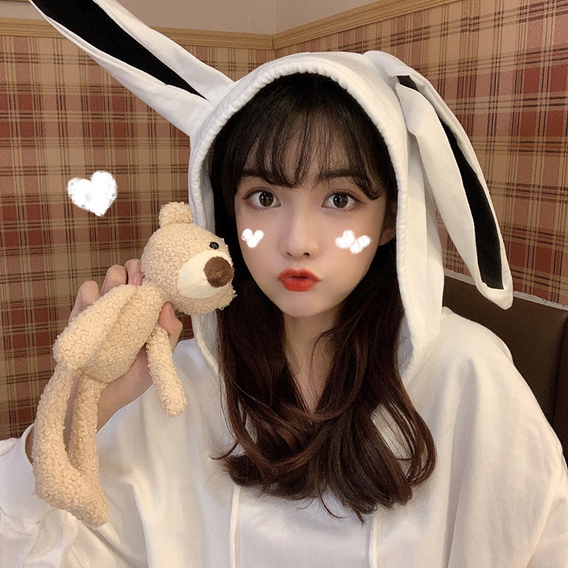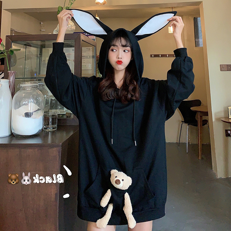 秋季2020新款学院风设计感可爱小熊宽松中长款大码连帽长袖卫衣女