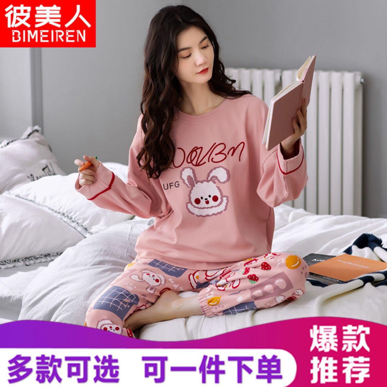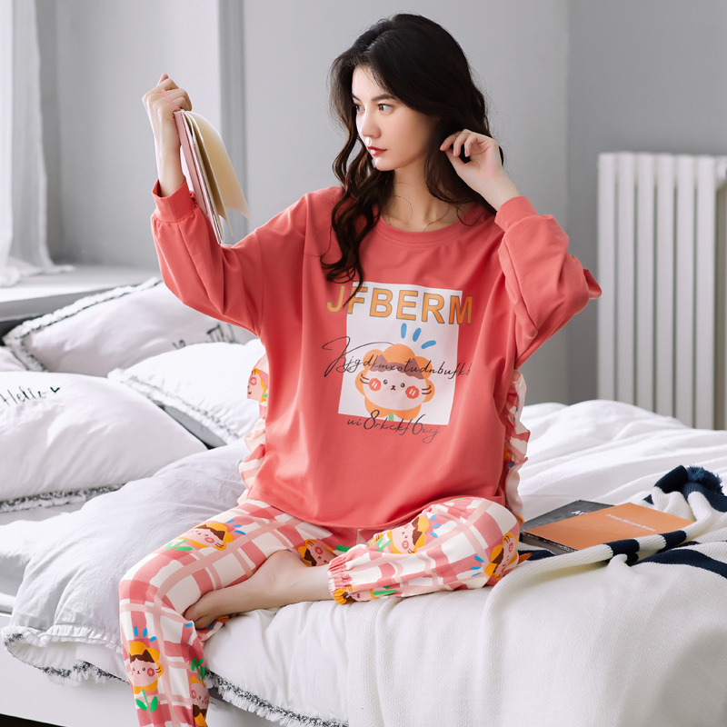 睡衣女春秋季长袖纯棉韩版卡通可爱学生全棉女士套装秋冬季家居服
