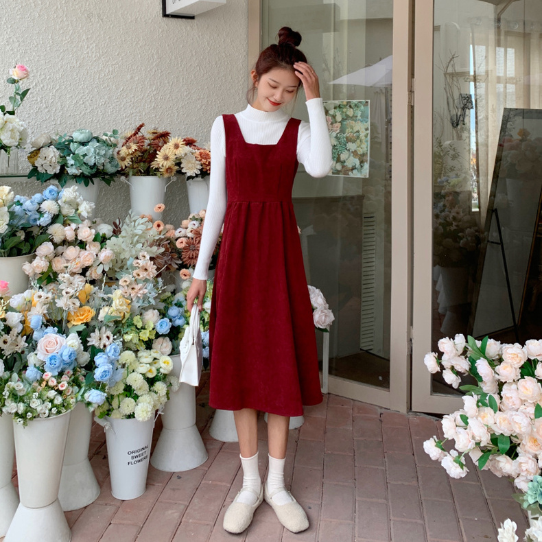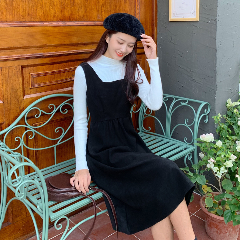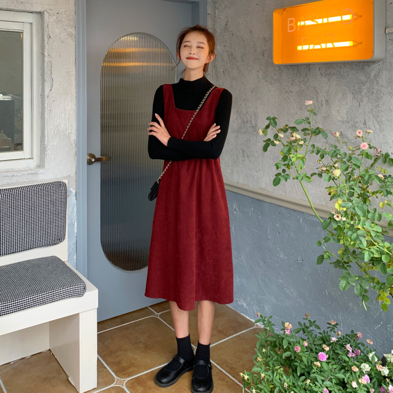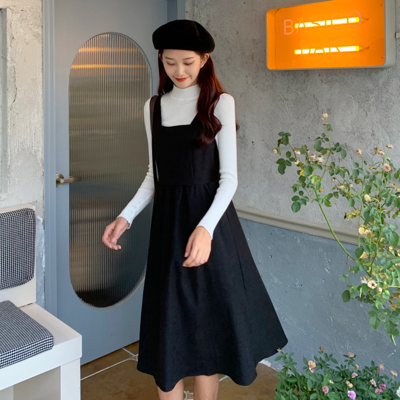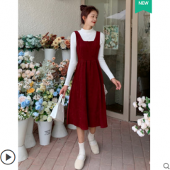 裙子女秋冬2020年新款减龄裙装背带裙两件套赫本风炸街茶歇连衣裙