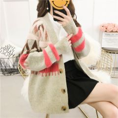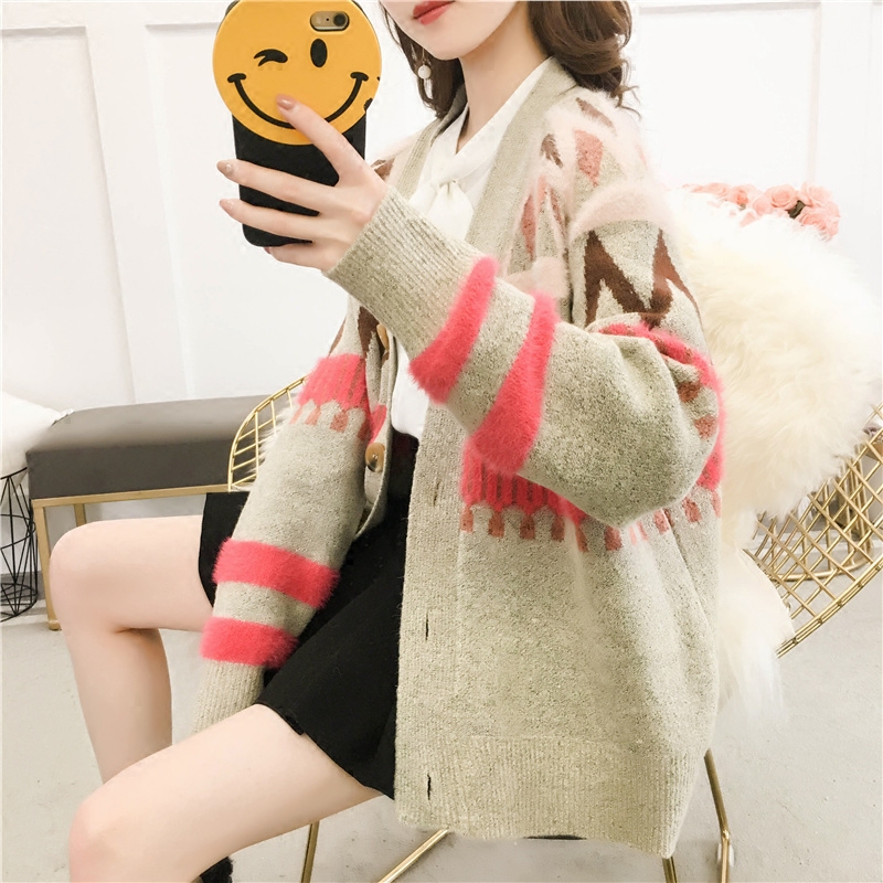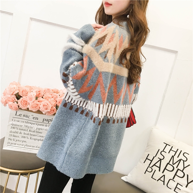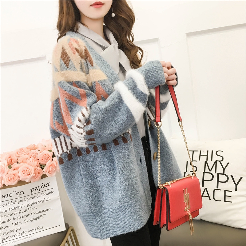 2020春装新款毛衣女开衫韩版宽松外穿慵懒风很仙的针织衫外套学生 单件 : 蓝色 卡色