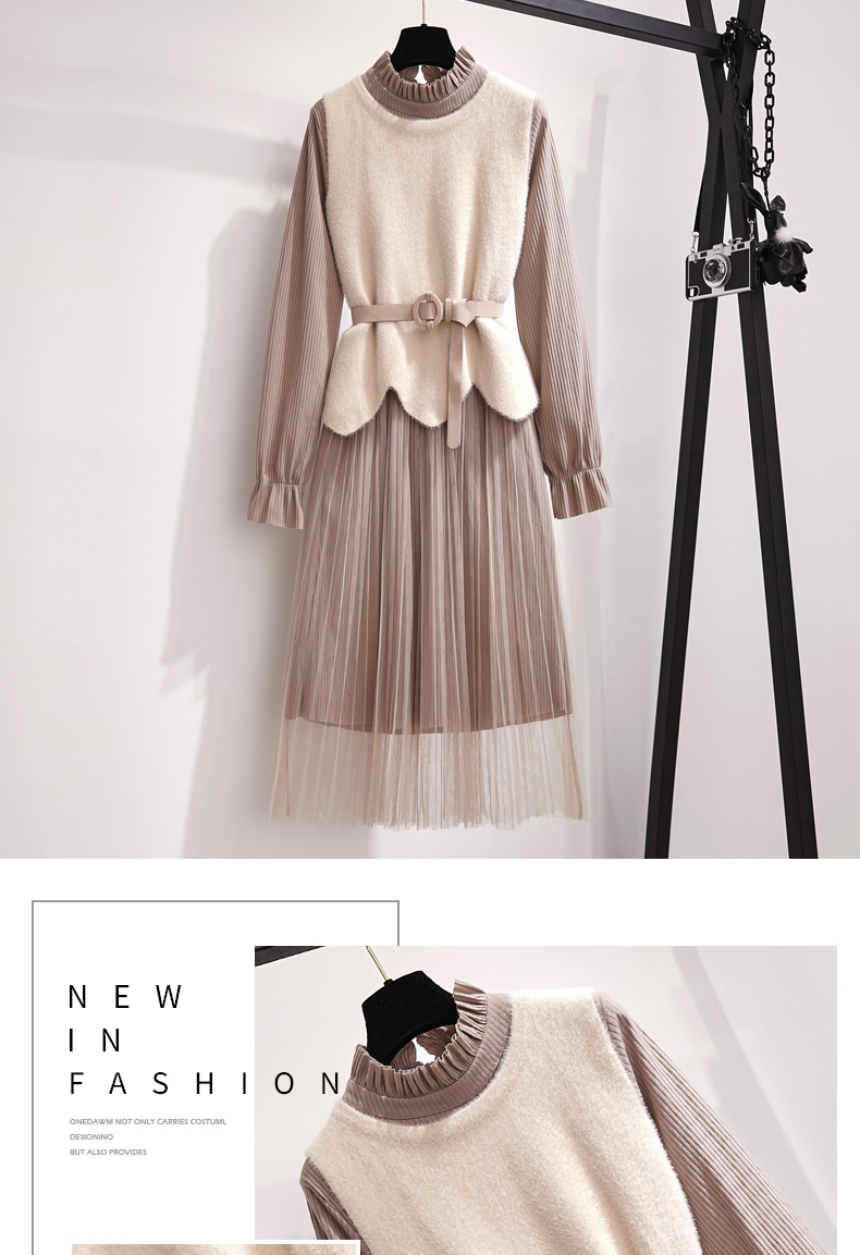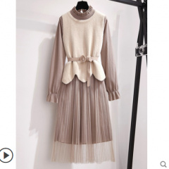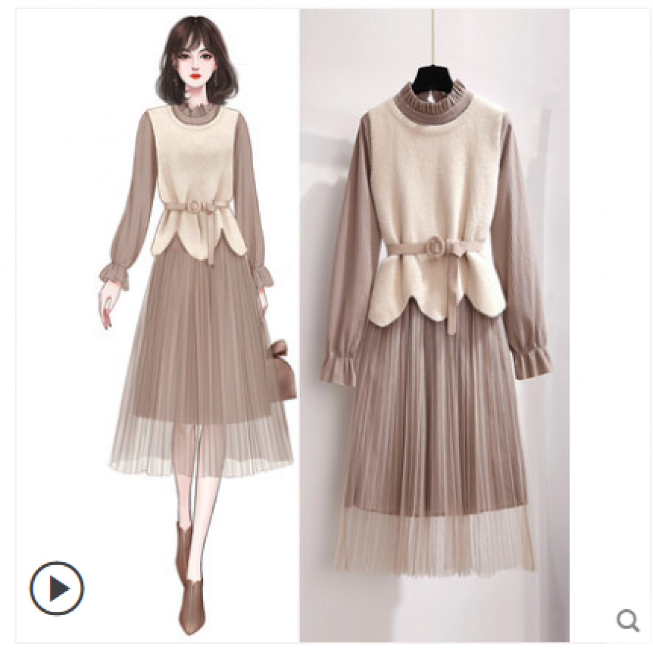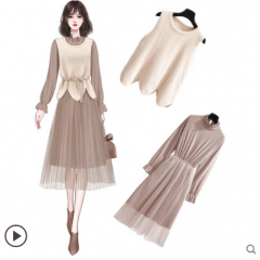高冷御姐风连衣裙女秋冬2020新款春季打底内搭气质套装裙子两件套