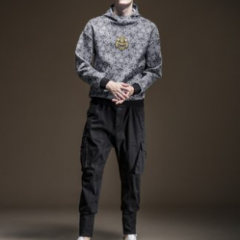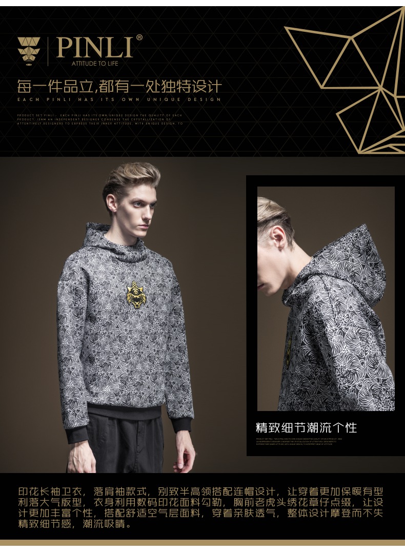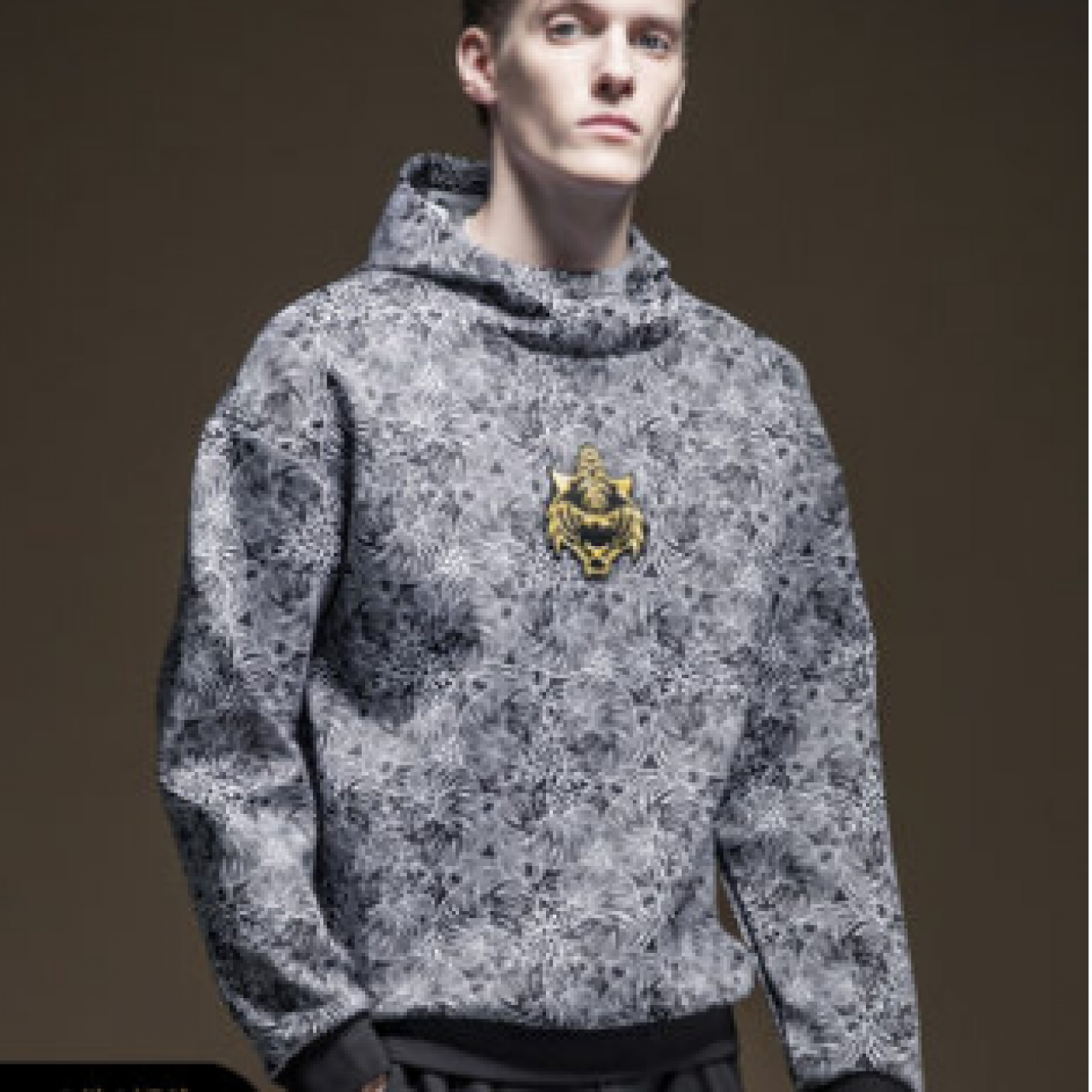 图案: 创意 领型: 高圆领 颜色: 灰色 黑色 袖型: 落肩袖