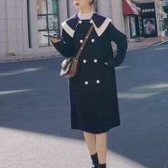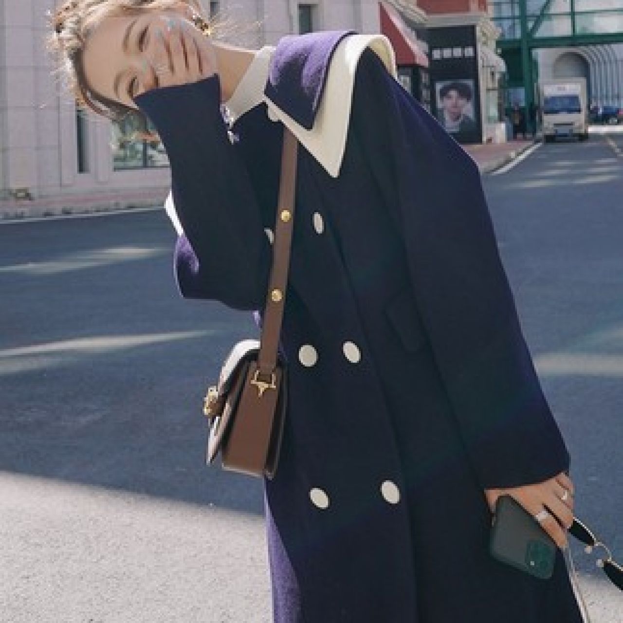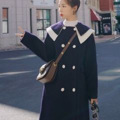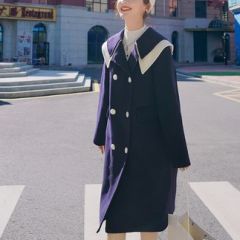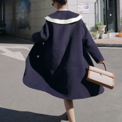 海军领斗篷毛呢外套女中长款秋冬气质加厚韩版宽松学生赫本风大衣
