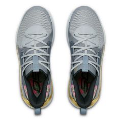 UA HOVR科技有助于加快能量回馈,为双足提供所需 助力。Micro G缓冲设计有助于增强启动突破与提速 切入时的爆发力。由合 成革、网眼布与TPU嵌片组成的透明覆层有助于强化足面特定部位的贴合度,帮助带来舒适、稳定而灵活的穿着体验。