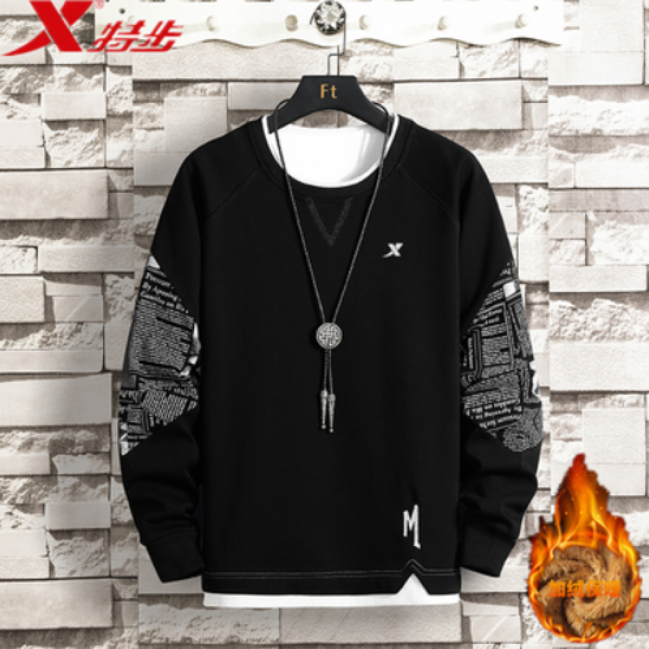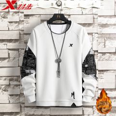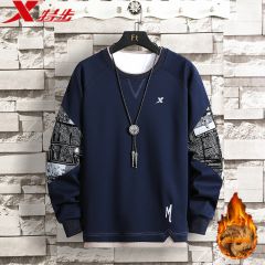 特步/XTEP加绒卫衣男秋冬新款宽松长袖圆领套头男装运动休闲上衣
