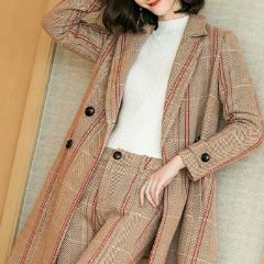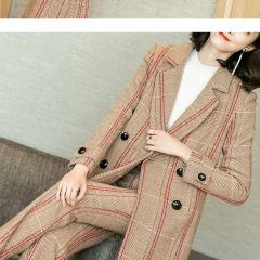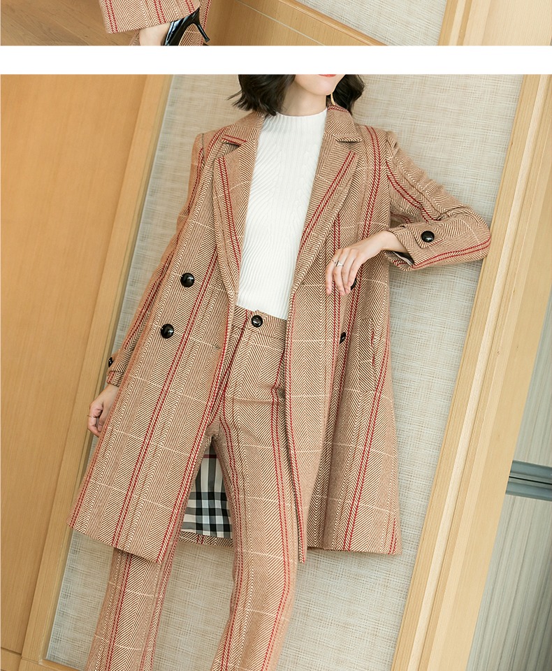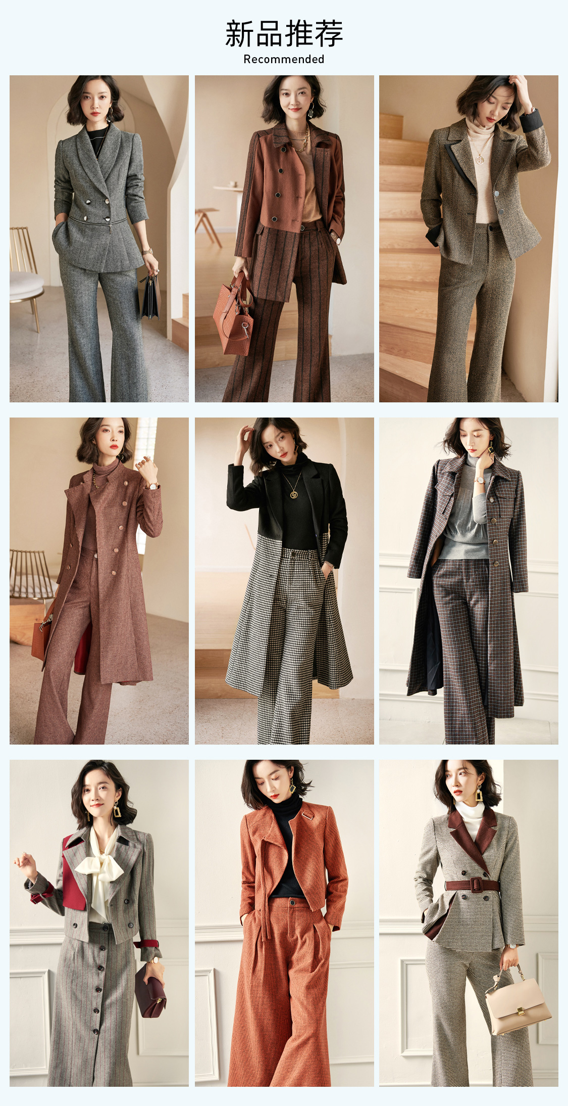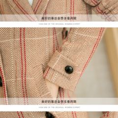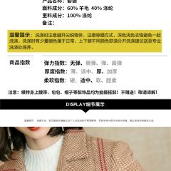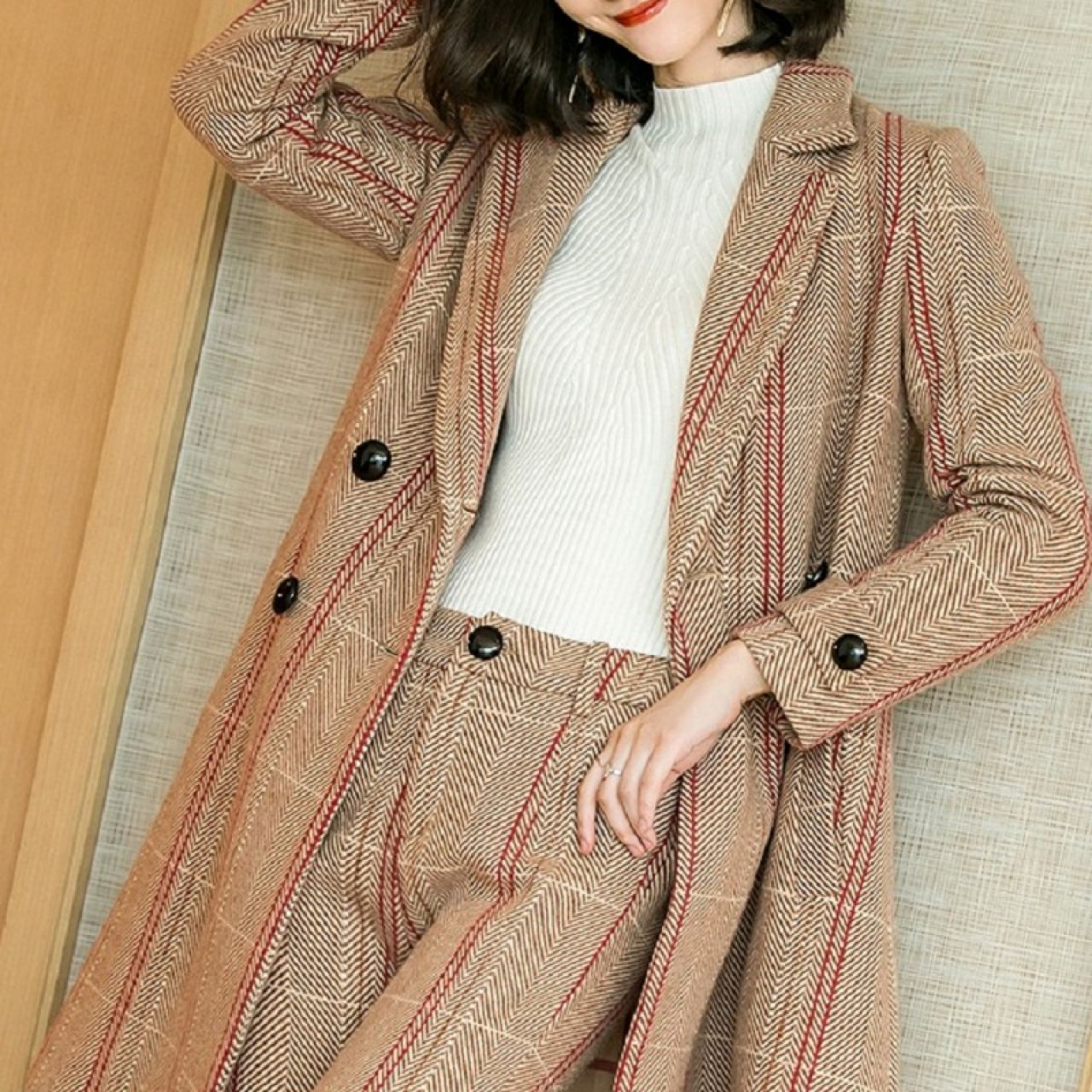 商品名称:毛呢大衣女外套毛呢外套女装呢子大衣套装羊毛外套条纹西装领高腰阔腿裤女两件套秋冬新款 浅咖色格子