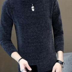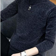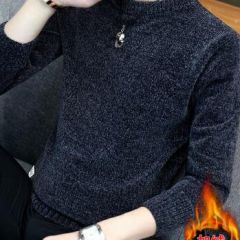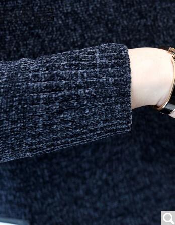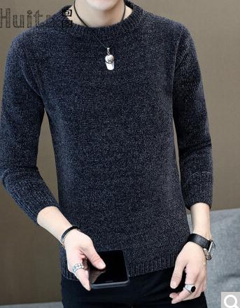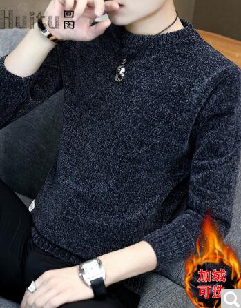 商品名称:回图 秋冬季毛衣男圆领雪尼尔加绒加厚款毛衫半高领针织衫韩版潮流修身冬装衣服纯色长袖t恤情侣男装毛线衣 深灰蓝色 XL