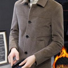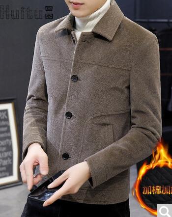 冬装潮流韩版修身男生衣服棒球服加棉加厚棉服保暖呢子大衣 深卡其色
