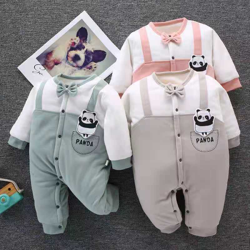 婴儿连体衣夹棉加厚保暖冬装男女宝宝哈衣爬服秋冬新生儿衣服纯棉