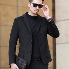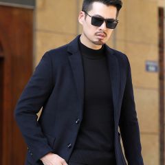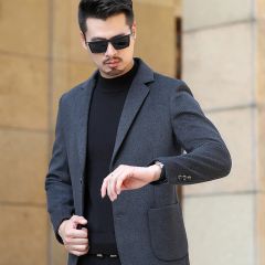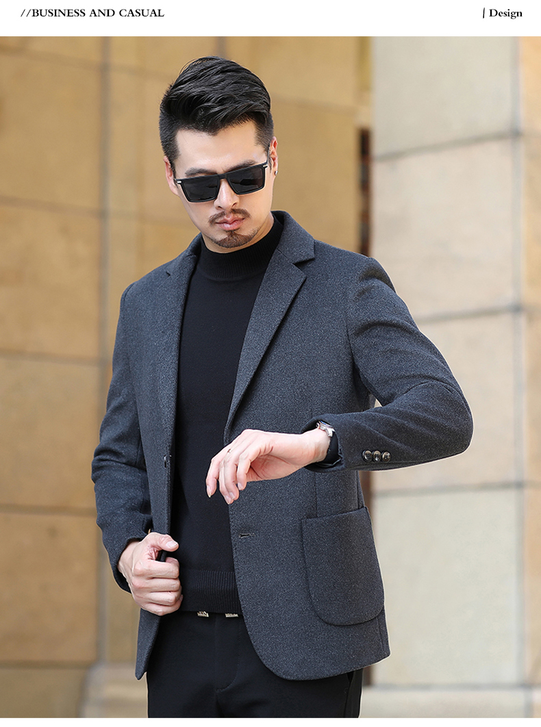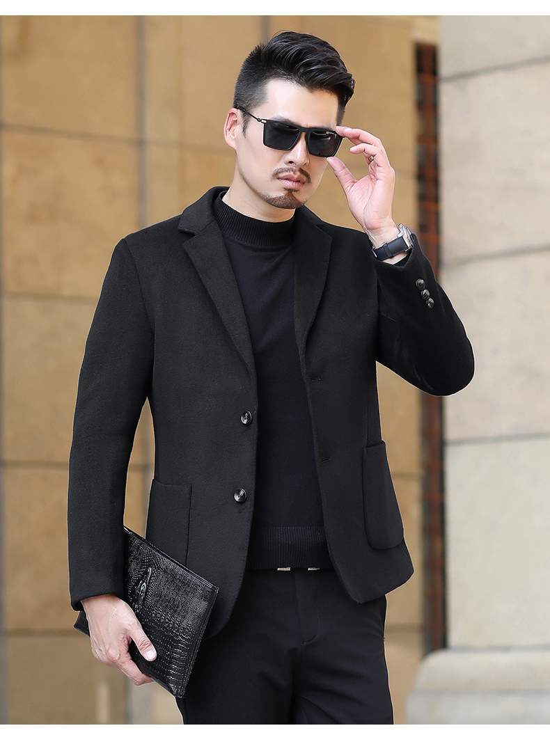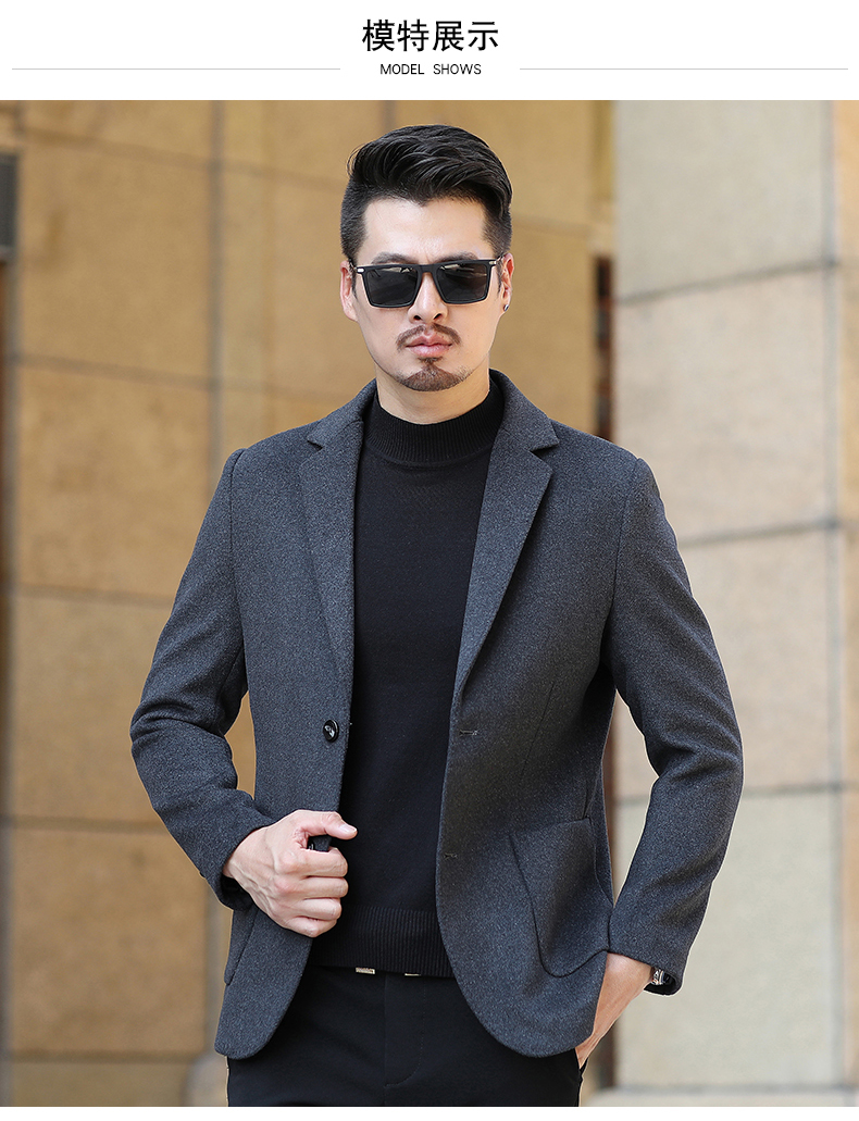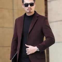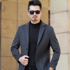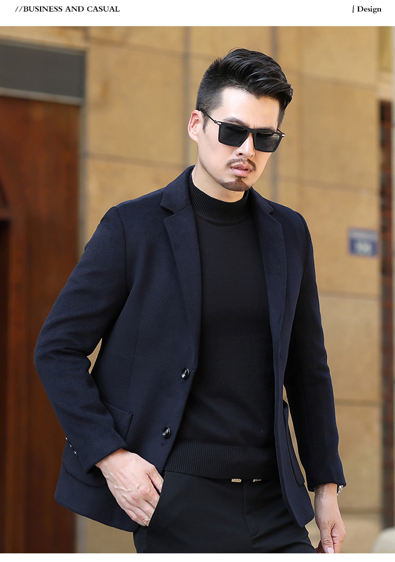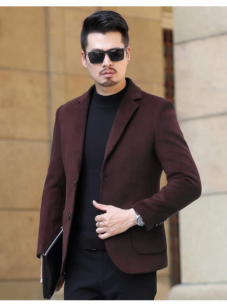 高档正品牌秋季爸爸装毛呢大衣男中年男士西装领羊毛呢子西服短款