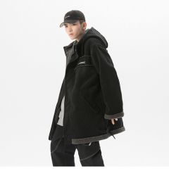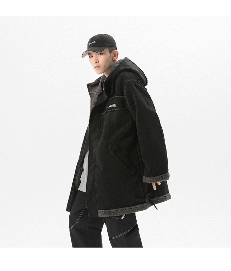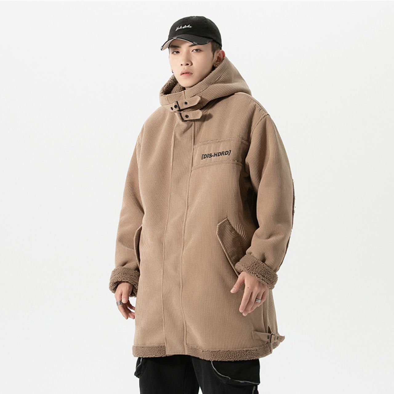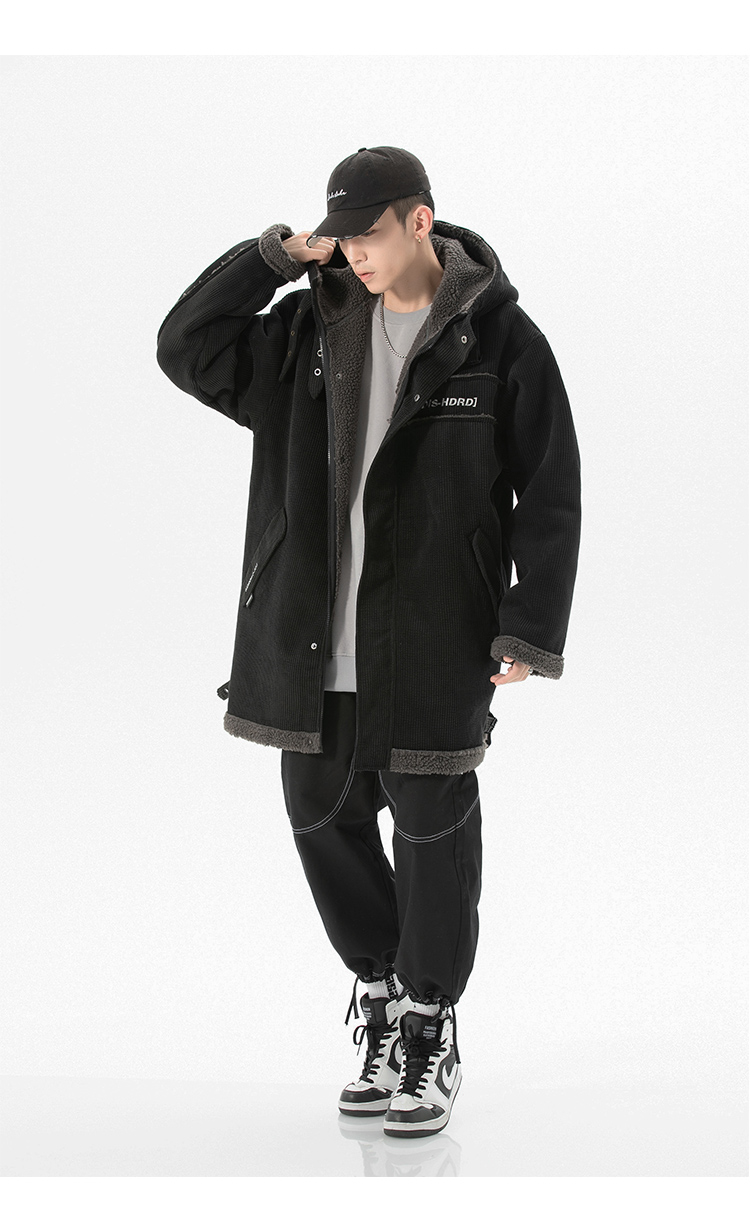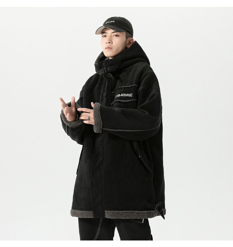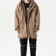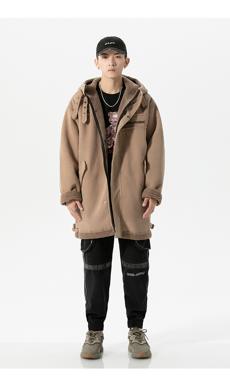 韩版潮流宽松加长棉衣男日系潮流加厚加绒外套冬季保暖连帽棉袄
