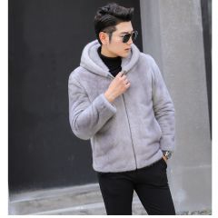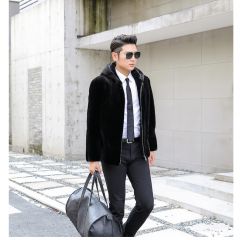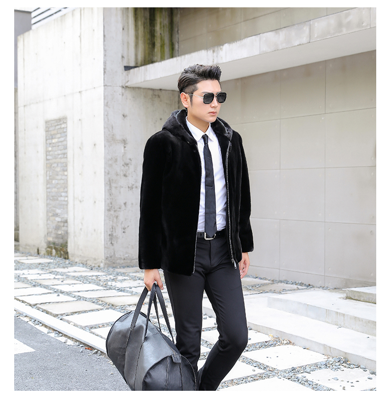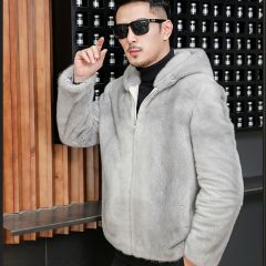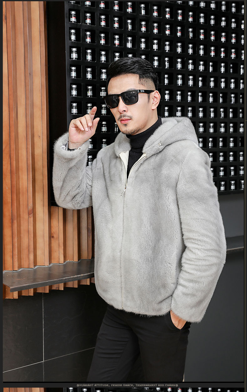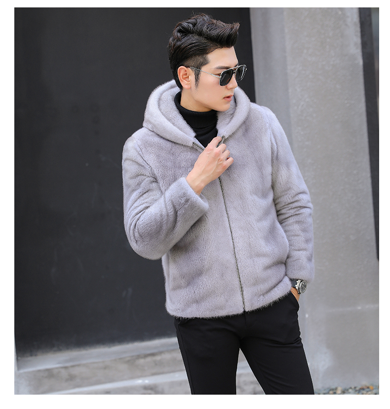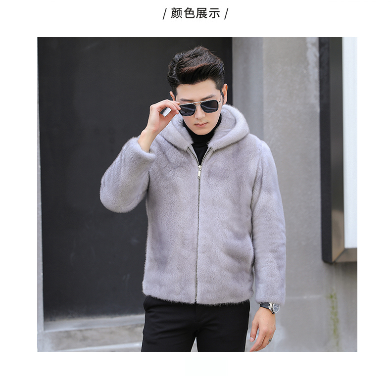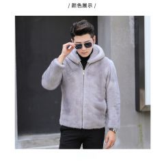 水貂皮草男士貂皮大衣外套整貂皮夹克2020冬季新款带帽拉链裘皮毛 时尚都市 黑色,灰色