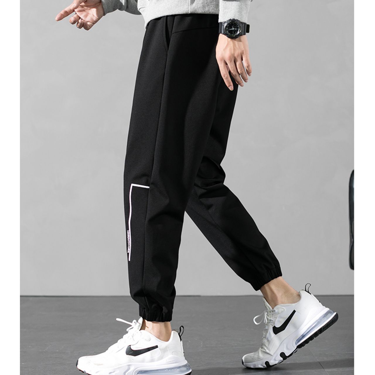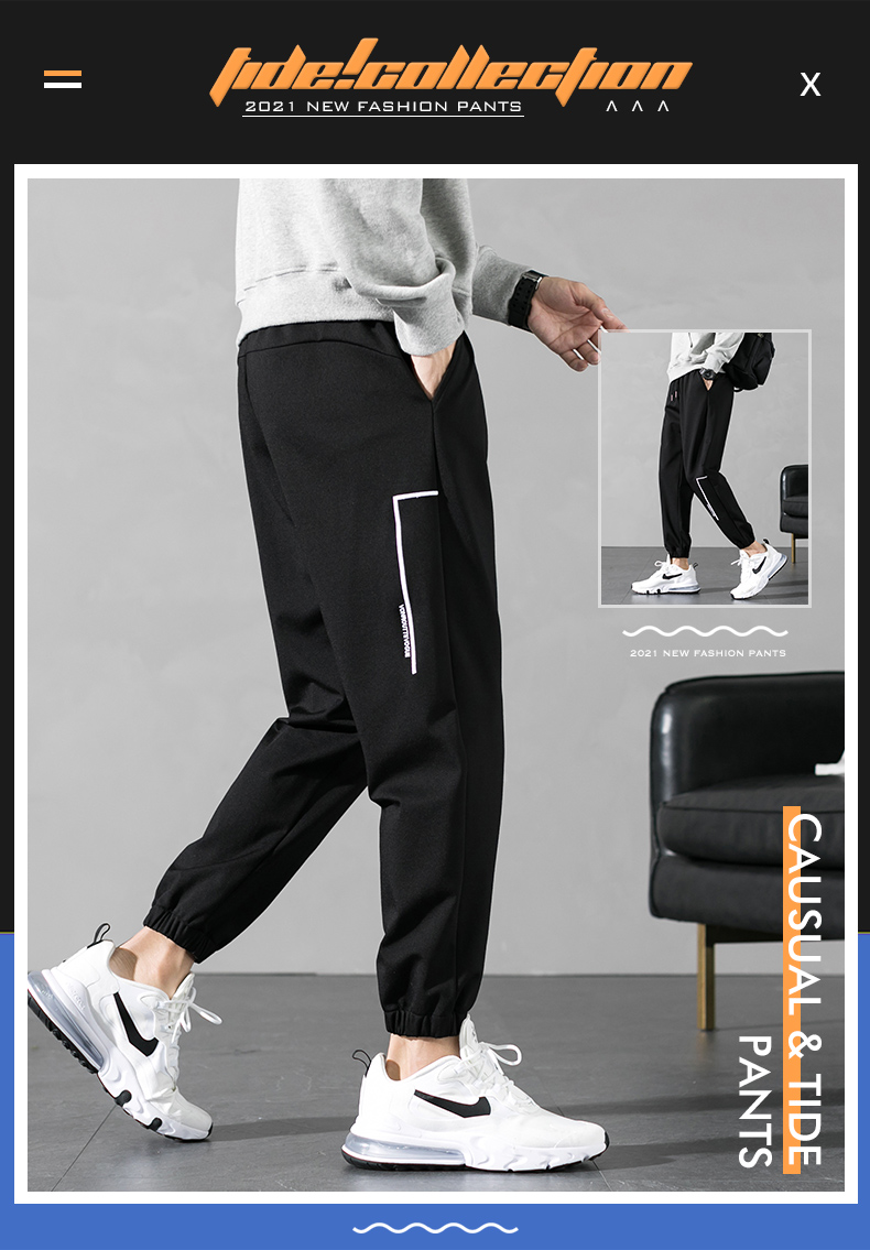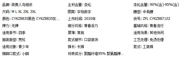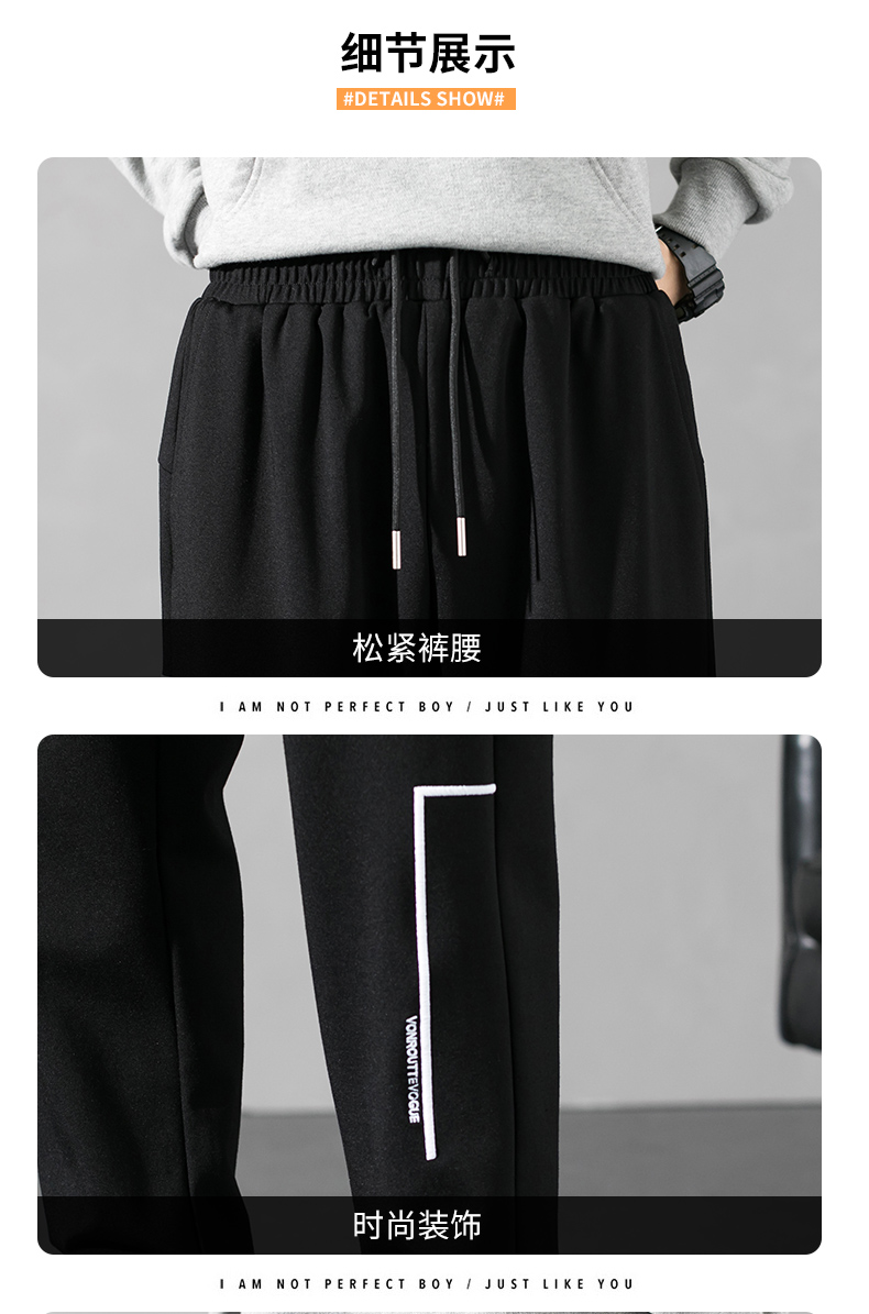 荣贵人鸟相依休闲长裤男韩版潮流ins秋季黑色束脚宽松运动裤子男