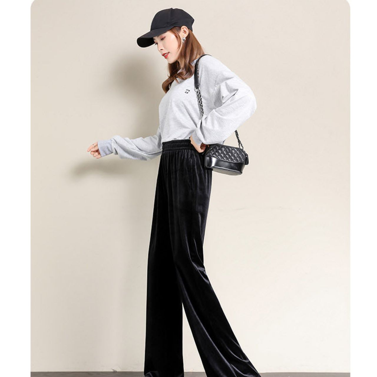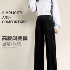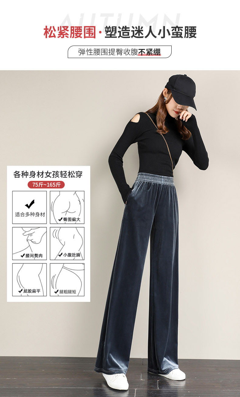 金丝绒阔腿裤女高腰垂感加厚裤子秋冬直筒宽松休闲拖地加绒运动裤
