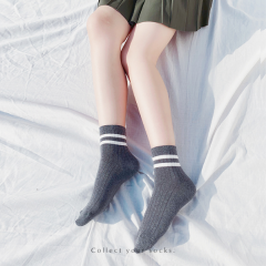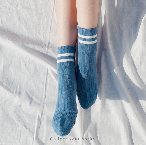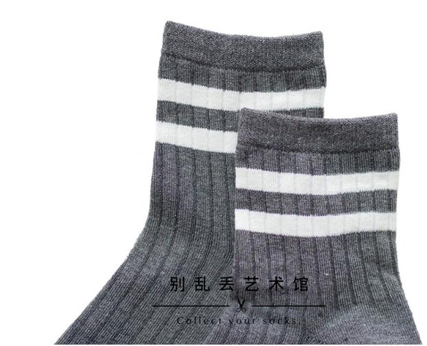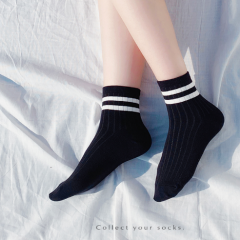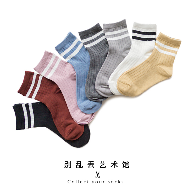 别乱丢纯色二杠袜子女基础款春秋中筒日系简约百搭韩国短袜学院风
