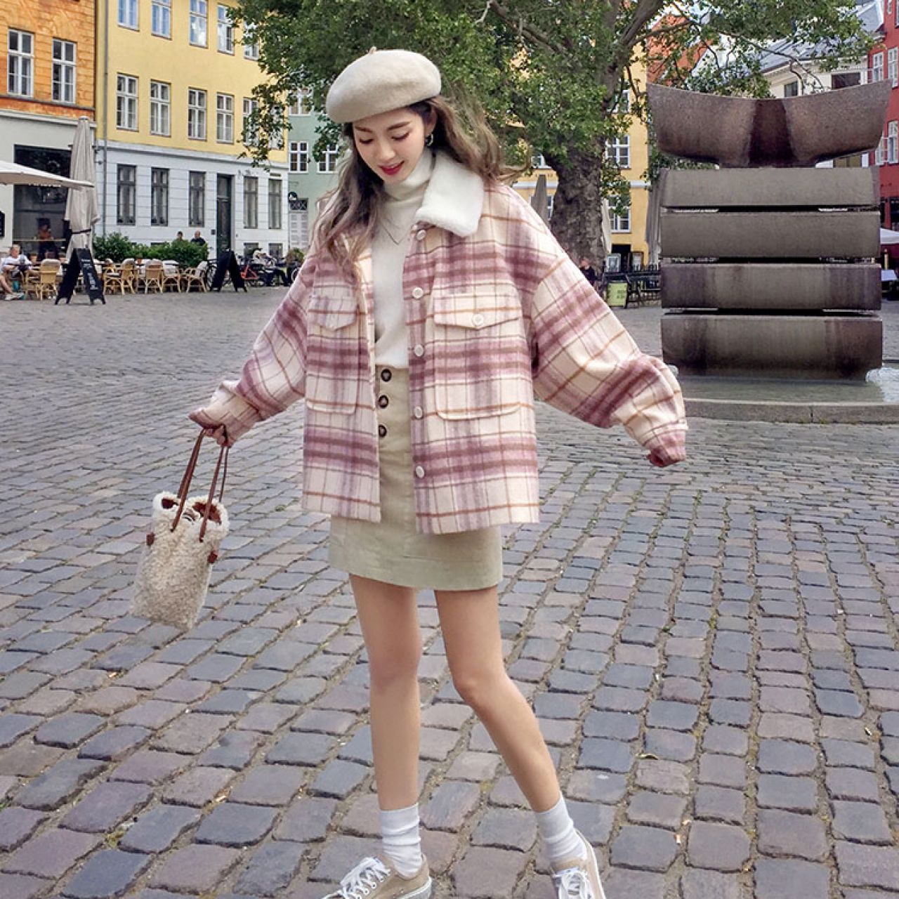 韩都衣舍2020秋冬新款韩版女装小个子呢子大衣小香风拼接毛呢外套