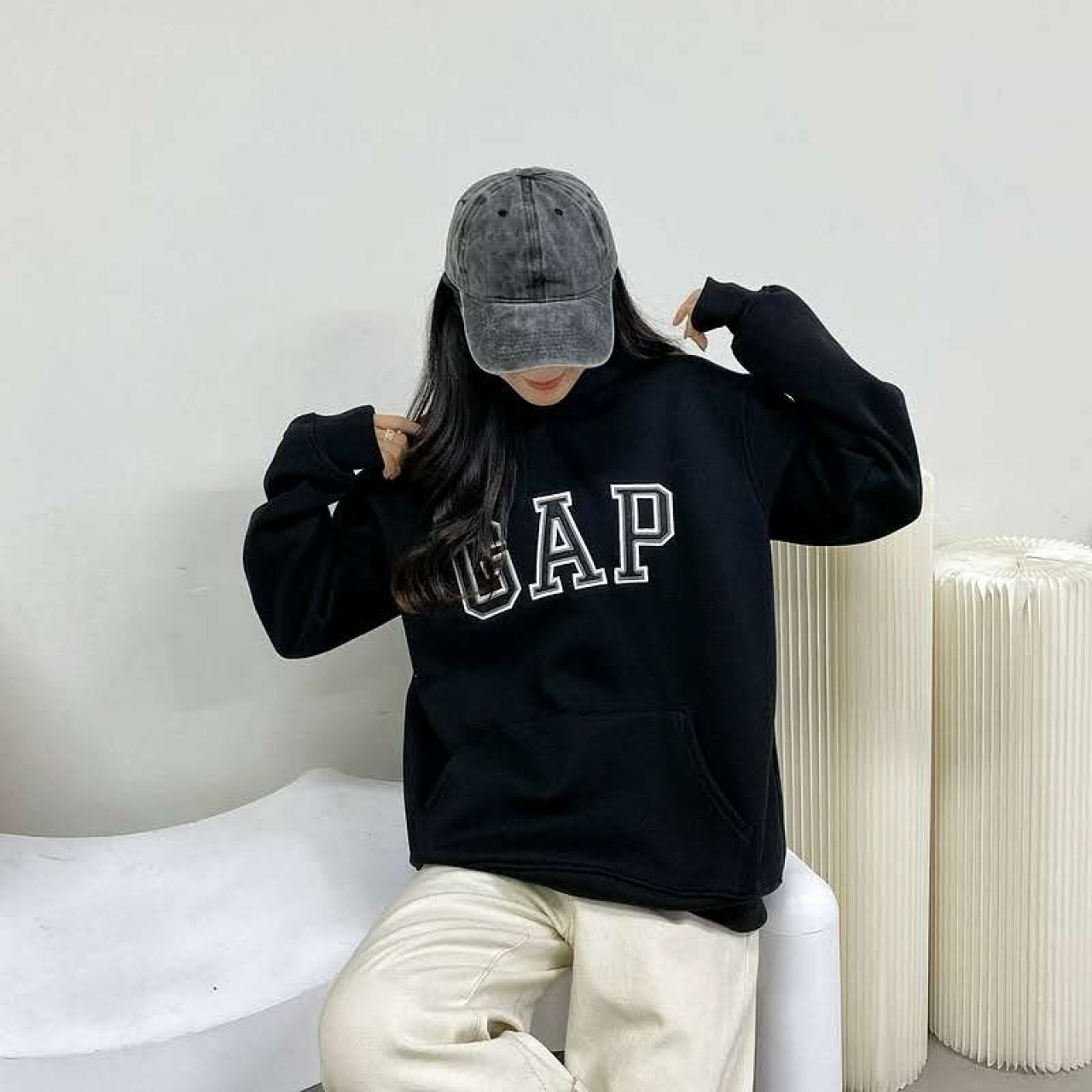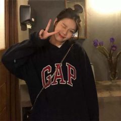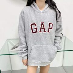 Gap经典刺绣LOGO连帽衫秋冬 女加绒运动连帽卫衣宽松