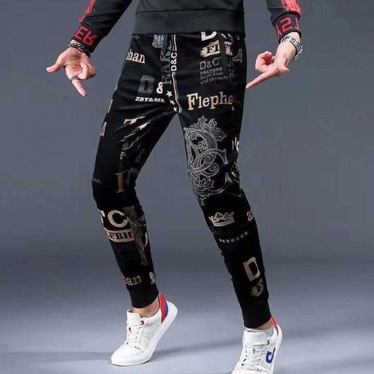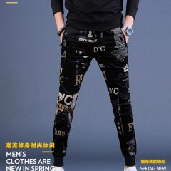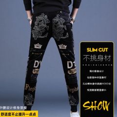 花花公子裤子男秋冬季款韩版潮流牌牛仔休闲长裤加绒束脚工装男裤