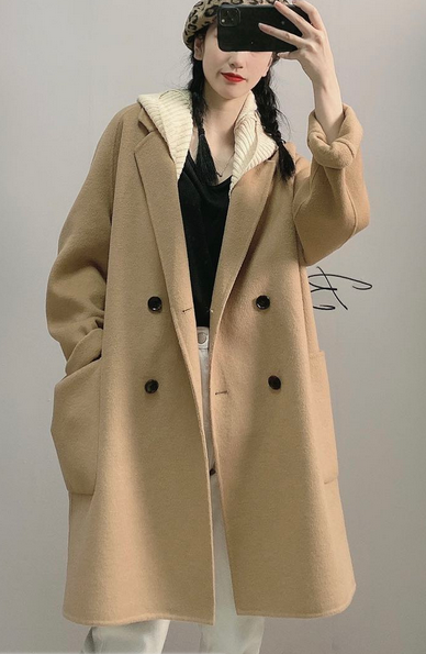 双面羊绒大衣女中长款2020秋冬季新款韩版宽松羊毛毛呢外套小个子中长款赫本风毛呢外套女秋冬季新款加厚流行呢子大衣女