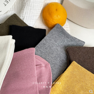 别乱丢莫兰迪色纯色袜子女中筒春秋韩国简约百搭基础款日系中筒袜