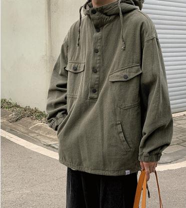 工装夹克男潮牌宽松日系复古水洗连帽外套韩版潮流百搭帅气春秋装