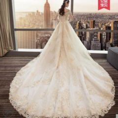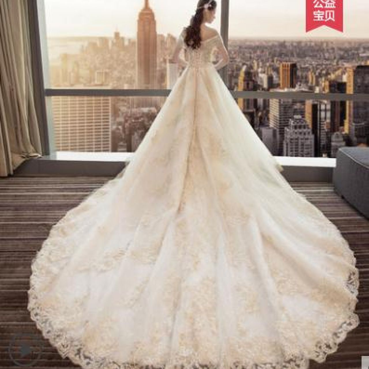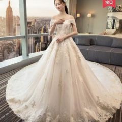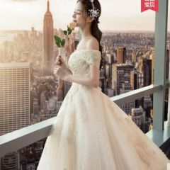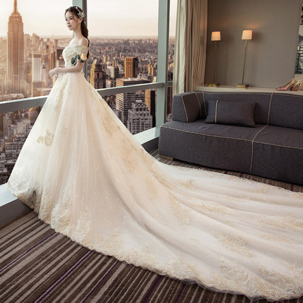 主婚纱礼服2020新款新娘梦幻一字肩轻秋冬气质拖尾超仙小个子森系