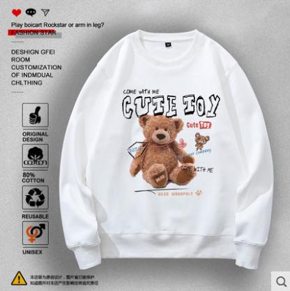 潮牌宇航员nasa联名卫衣男小熊印花长袖宽松不戴帽潮流情侣装