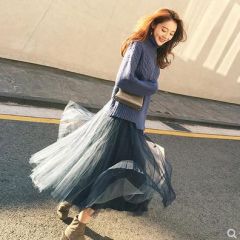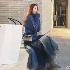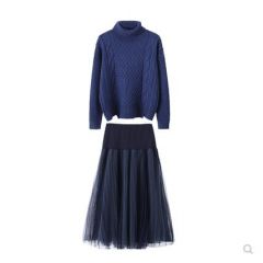 欧洲站2020秋冬新款女装港味网红慵懒风温柔超仙网纱裙子两件套装