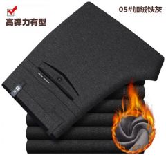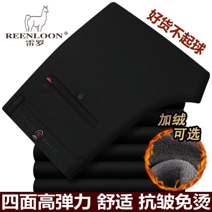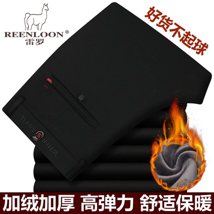雷罗男士休闲裤弹力中年宽松男裤秋季直筒加绒加厚长裤子保暖冬季