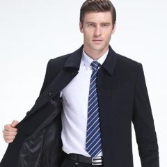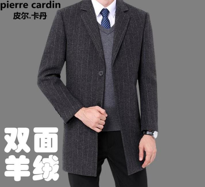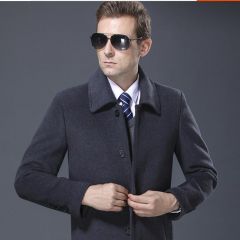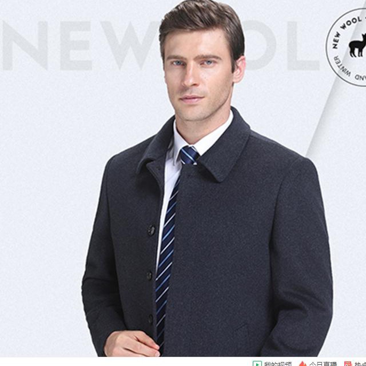 秋冬季新款翻领羊毛大衣高端商务男装中年男士休闲桑蚕丝毛呢外套