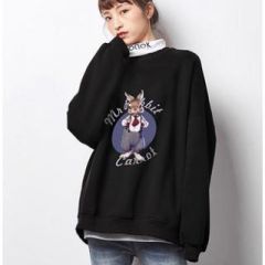 唐狮加绒加厚圆领卫衣女2020秋冬新款长袖黑色上衣韩版宽松ins潮