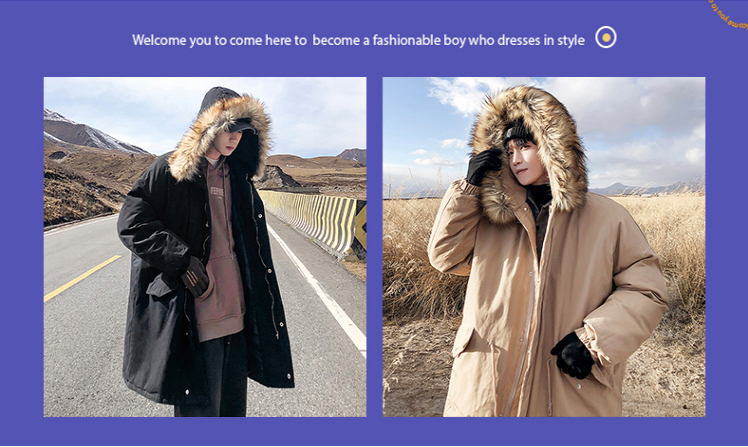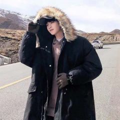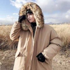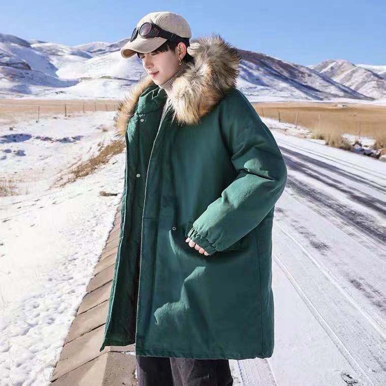 子俊男装潮牌中长款棉衣2020冬季新款加绒加厚大毛领棉服外套棉袄