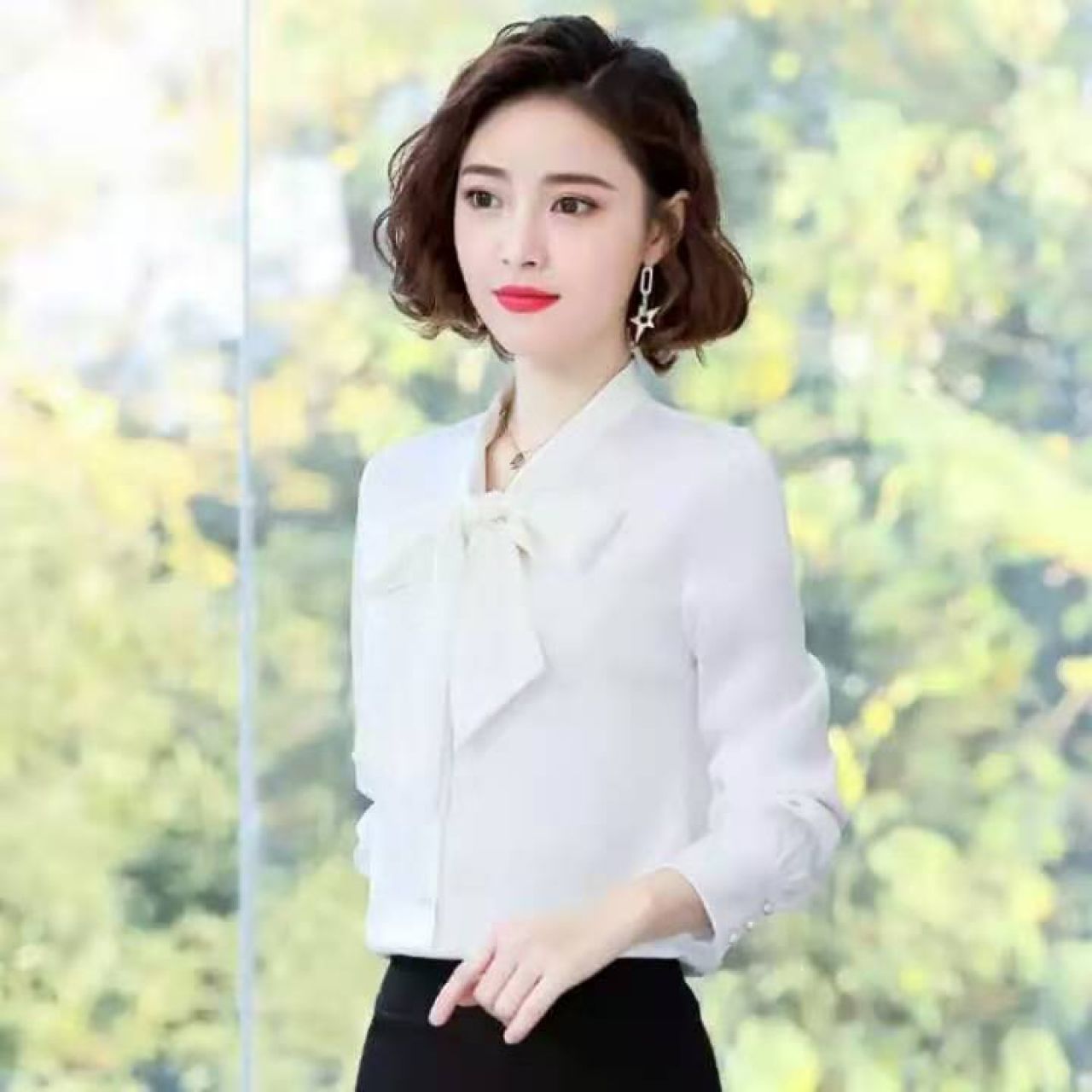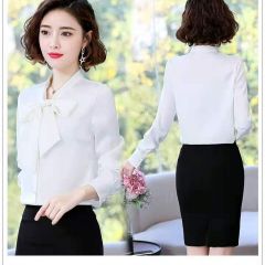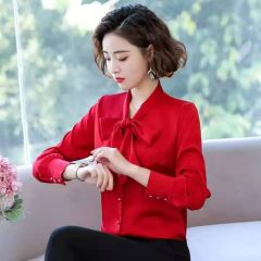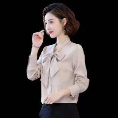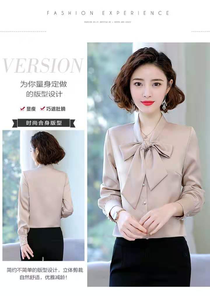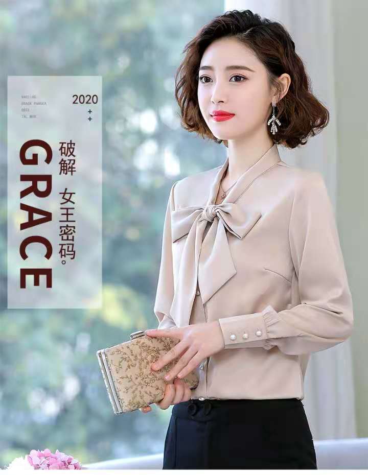 Ousmile 衬衫女年秋冬装蝴蝶结长袖衬衣新款上衣职业洋气显瘦加绒雪纺衬衣打底衫