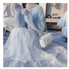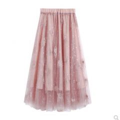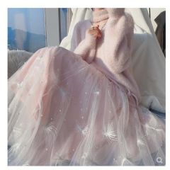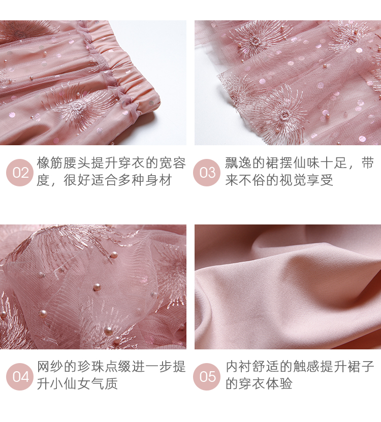 温柔风高腰珍珠网纱半身裙秋冬女中长款a字仙女裙冬季2020年新款