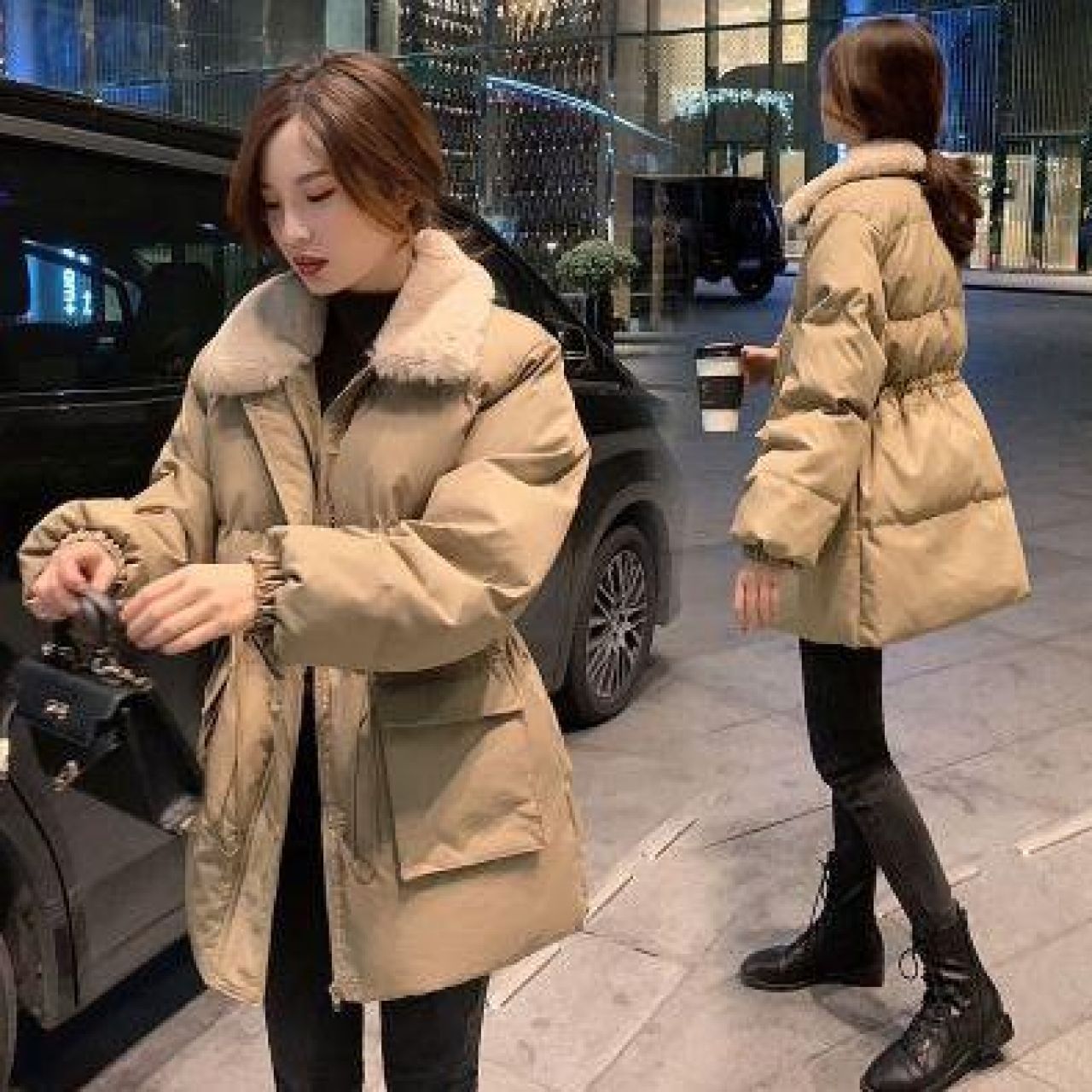 2020冬季新款韩版中长款收腰棉服羽绒棉衣外套小个子面包服