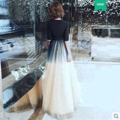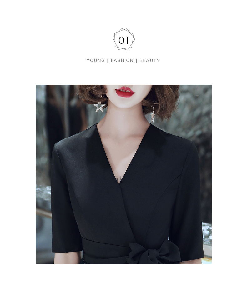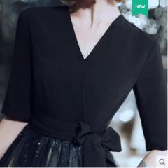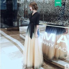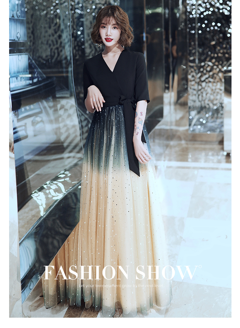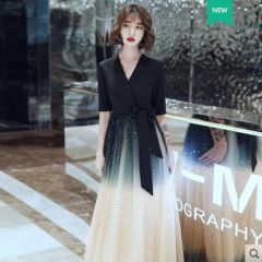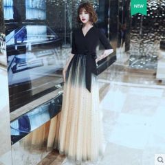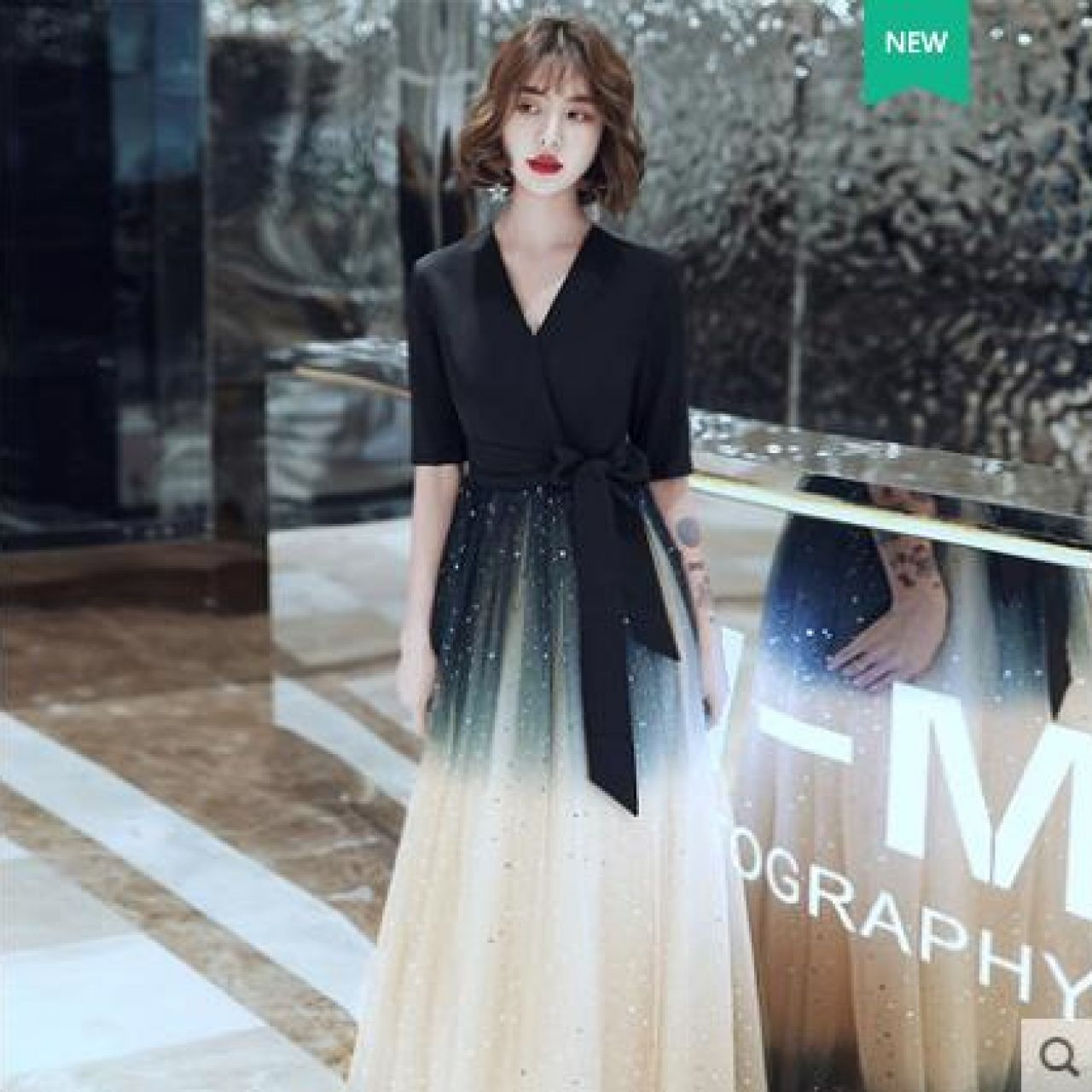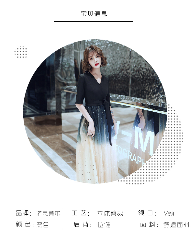 黑色年会晚礼服女2020新款宴会气质名媛v领时尚主持人连衣裙长款