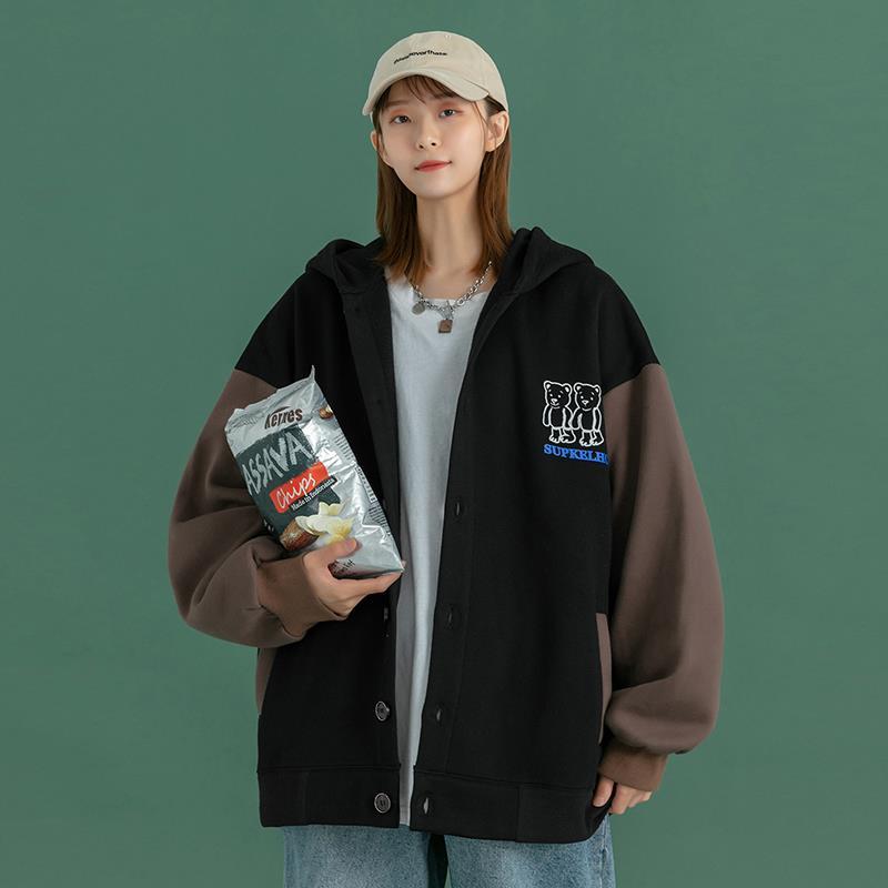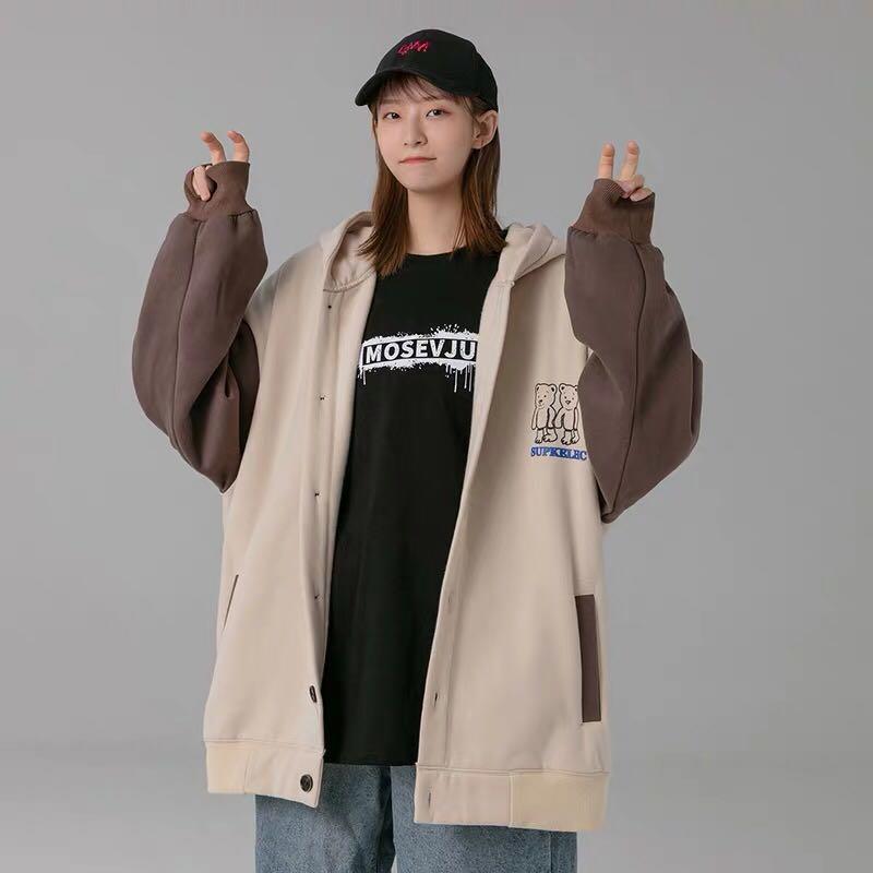 棒球服外套女新款春秋季韩版宽松连帽bf夹克街头学生潮港风男女