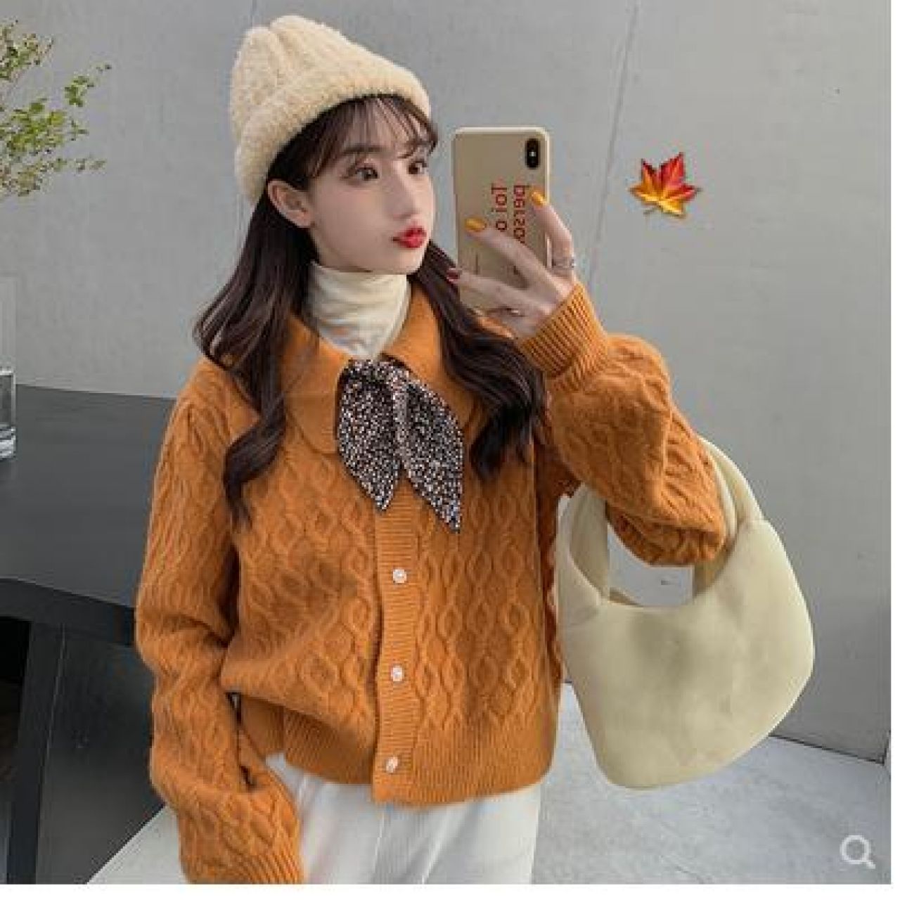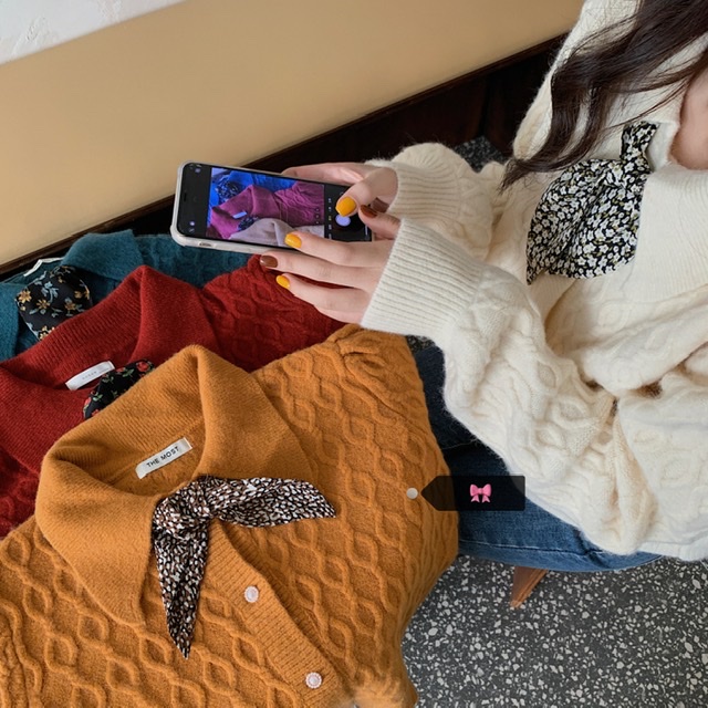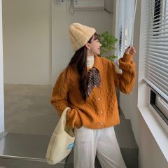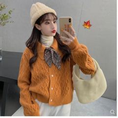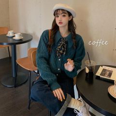 复古娃娃领加厚毛衣女宽松外穿秋冬季2020年新款短款针织开衫外套