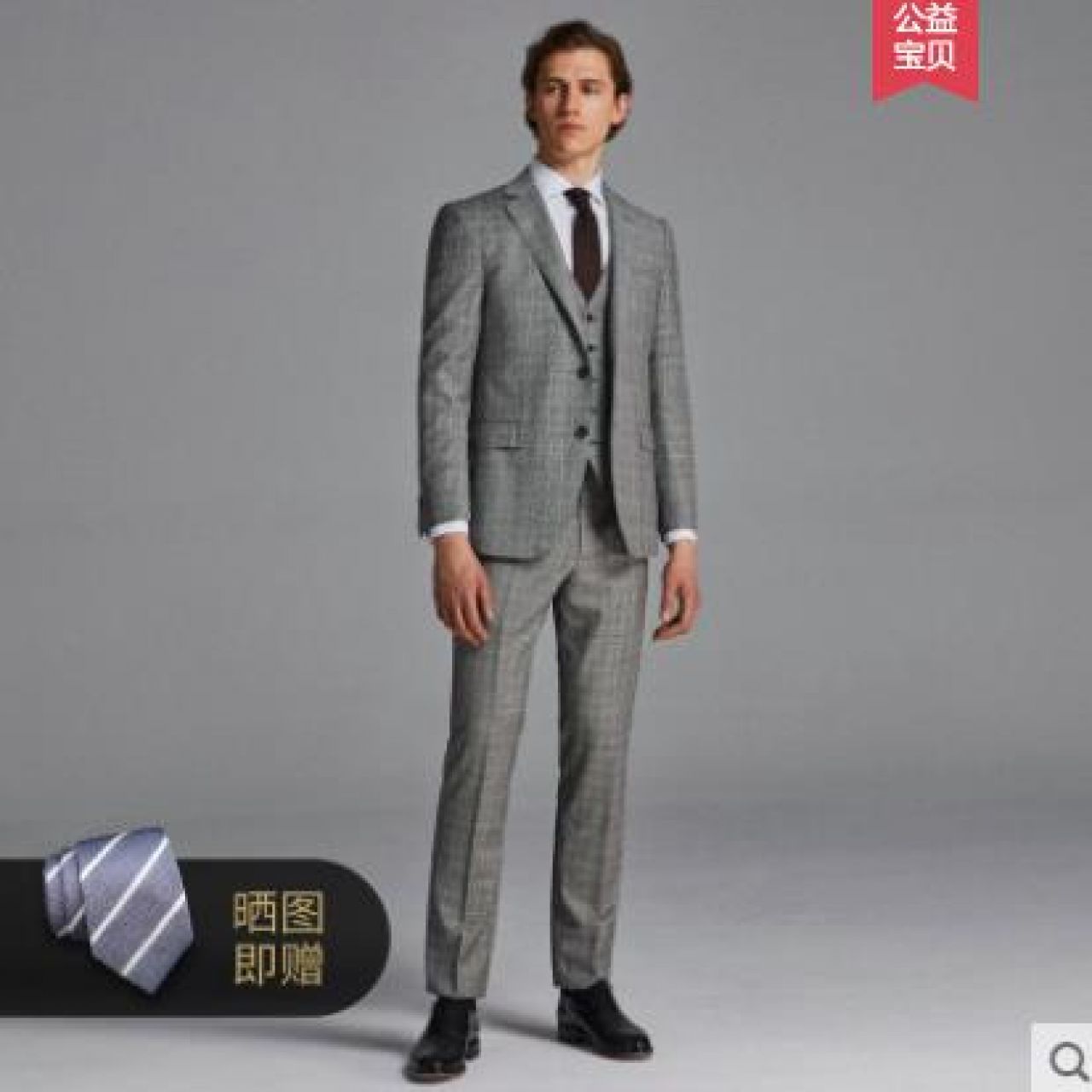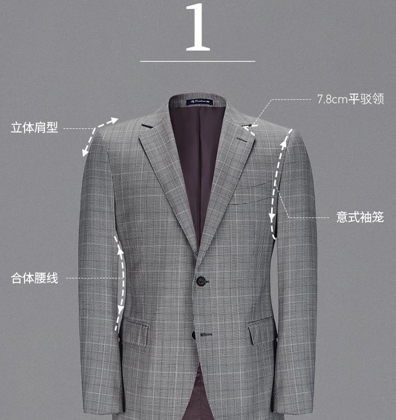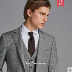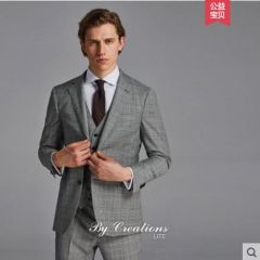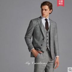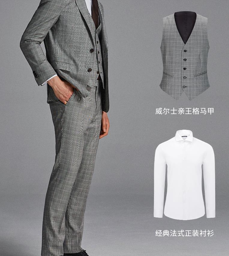 柏品纯羊毛商务西服套装男复古威尔士格纹正装西装