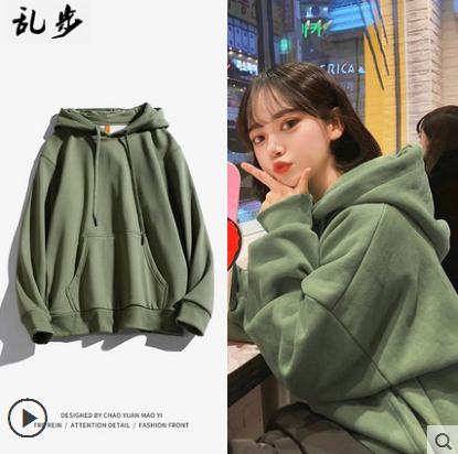 秋冬纯色卫衣男女2020加绒宽松加厚连帽oversize长袖上 连帽设计 加绒保暖 男女同款
