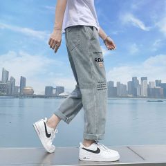 牛仔裤男直筒宽松潮牌2020秋冬款百搭九分裤休闲长裤子男韩版潮流