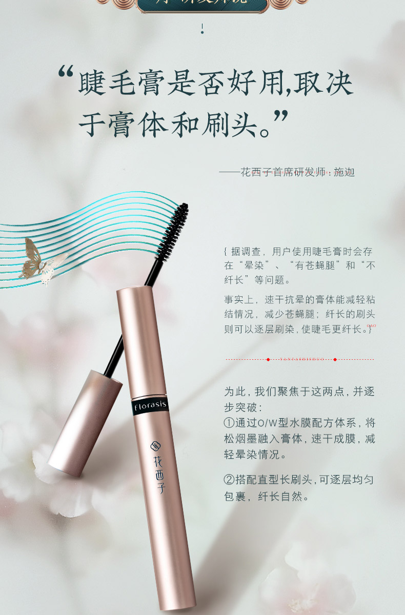 花西子松烟蝶羽睫毛膏/防水纤长卷翘不晕染浓密嫁接持久自然加长