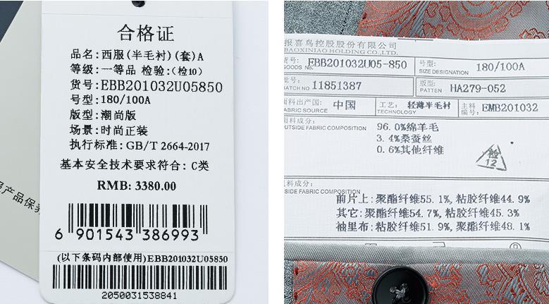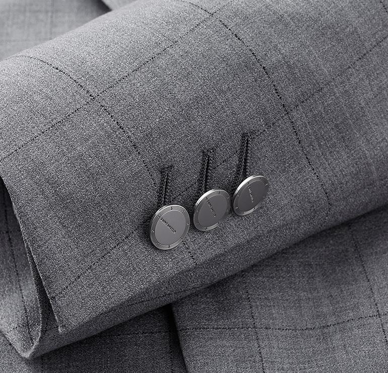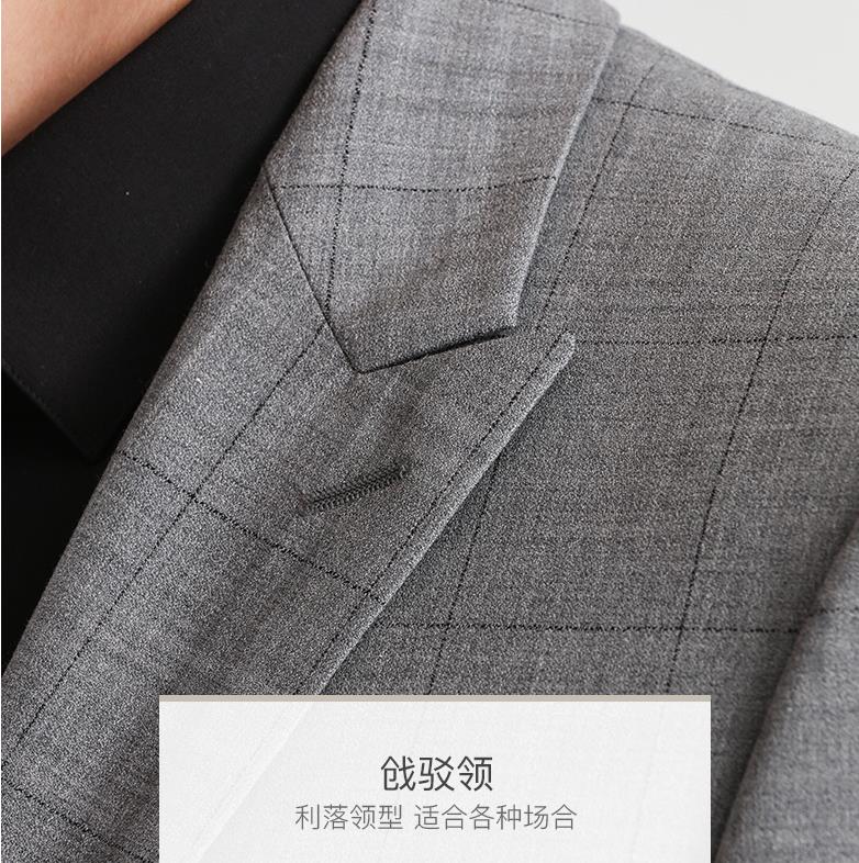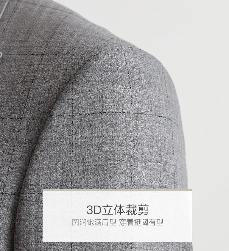 报喜鸟春季男士商务休闲羊毛西服套装 修身格纹时尚西装EBB201032
